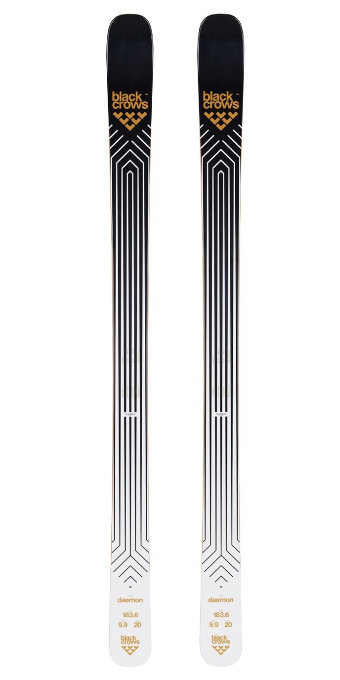 We tested the Daemon in a 183cm length (183.6 according to Black Crows) at 99mm underfoot. Although skinny is the new fat, the 99mm waist proved to be ideal for the many snow conditions we tested in. It is fully rockered, but its rocker is very gradual and slight, which makes for a ski that is easy to pivot. A titanal plate in 2/3rds of the ski makes for a very stable ski that still leaves room for some improvisation. Minimal sidecut and a 20m wide turn radius shouldn't scare you away, as the ski is still very quick edge to edge.