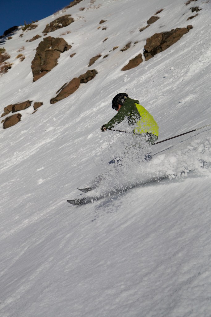 In crud conditions the DPS is as capable as the fully rockered Volkl Mantra. The Mantra relied on its rocker and stiffness to bust through tough conditions. One crucial difference is the somewhat soft, long rockered tip of the DPS which tends to bounce around a bit in bumpy, chattery, refrozen chunder. Extra length on the DPS can get you more edge when you need it, but it comes with the extra weight that gets in the way when you want to get the ski off the ground or need to turn quickly in challenging conditions.
