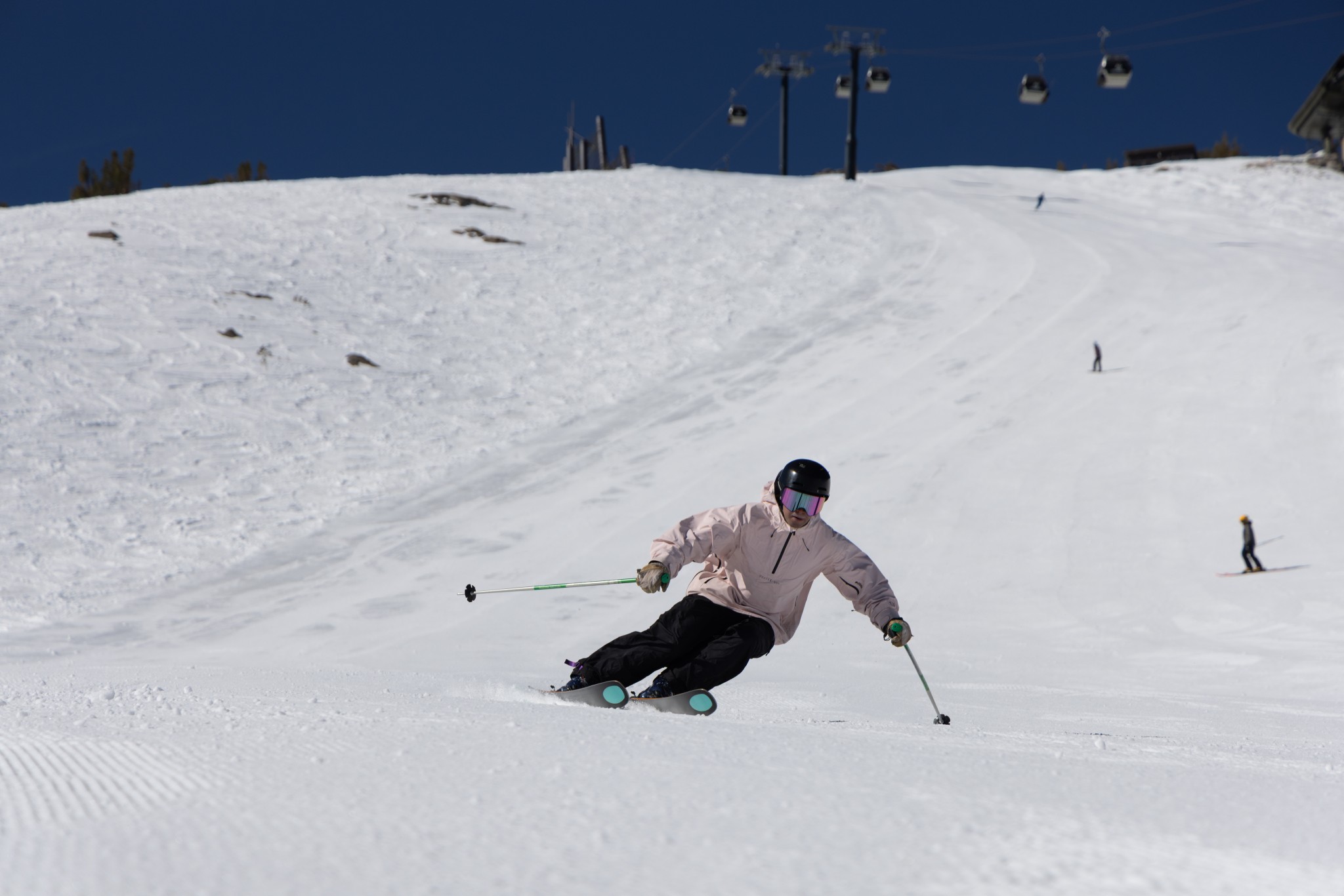 The Paragon 93 is comfortable making shallow-angle carves and smears at moderate speeds, which is a more accessible departure from the Kastle norm. This ski prefers short and medium-length turns, despite its listed 18.2-meter turn radius. Our testers commented that it was challenging to maintain a clean carve on the Paragon 93, as the ski would tend to lose edge grip behind the rear binding and break into a skid somewhere in the middle of the turn. This can be fun for skiers who are cruising the groomers and making smeared turns at low to moderate speeds. But frontside carvers should not expect much performance from the Paragon 93.