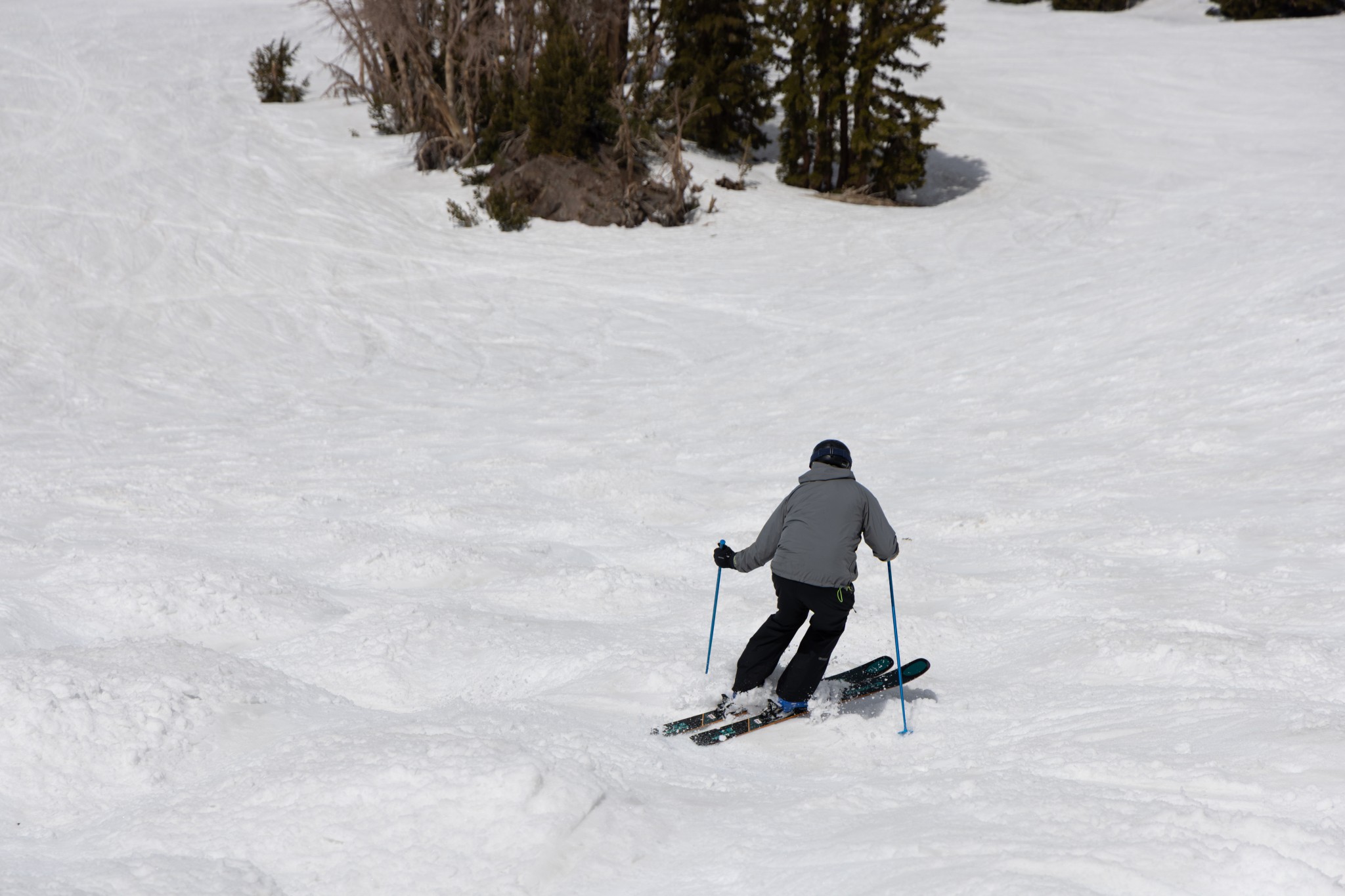 Moguls are manageable with the Paragon 93, but it's not ideal. Its relatively narrow 93-millimeter waist width and low camber profile allow this ski to pivot easily. However, the main issue is that the Paragon 93's pivot point seemed too far forward, which made it difficult to smear, despite its tendency to have a loose tail. We found ourselves shopping for the right bump rather than skiing a zipper line with confidence.