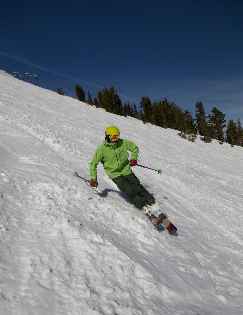 The tapered tail on the NRGy 100 was the best design feature to help them be more playful. The tail wasn't prone to hooking up and allowed the ski to cut loose a little bit. Otherwise we think this is a very damp ski that didn't play too much. It lacked the pop that we enjoy in the Volkl Mantra and the quicker turning experience we had with the K2 Pinnacle 95.