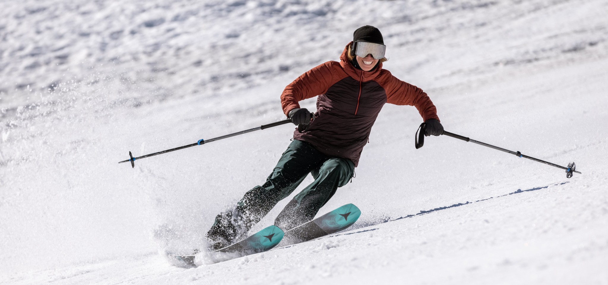 We found the turn radius of this ski to be significantly shorter than its advertised 17.9 meters, possibly because it is very easy to bend, allowing us to arc a tighter turn with ease. With this in mind, we'd recommend this ski to ladies to are learning to carve and lay two clean tracks down in the snow behind them. The Maven 93 C is still fun to carve in a short-to-medium radius turn for those who've already mastered this skill. It can hold the edge in this type of turn through softer snow but doesn't grip as well on hard-pack or steeps. We again found the tips flapping in higher-speed carved turns, but the edge underfoot held decently.