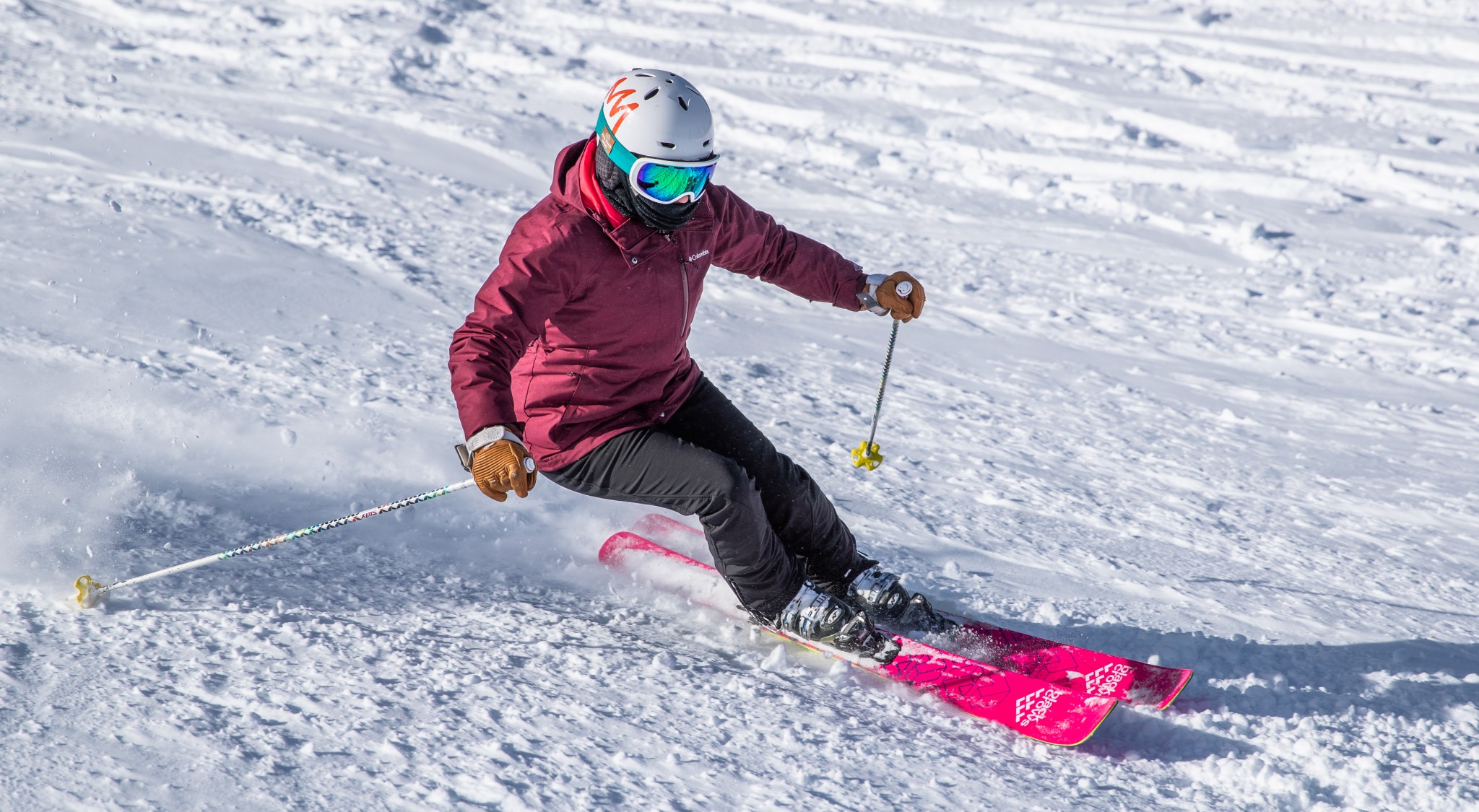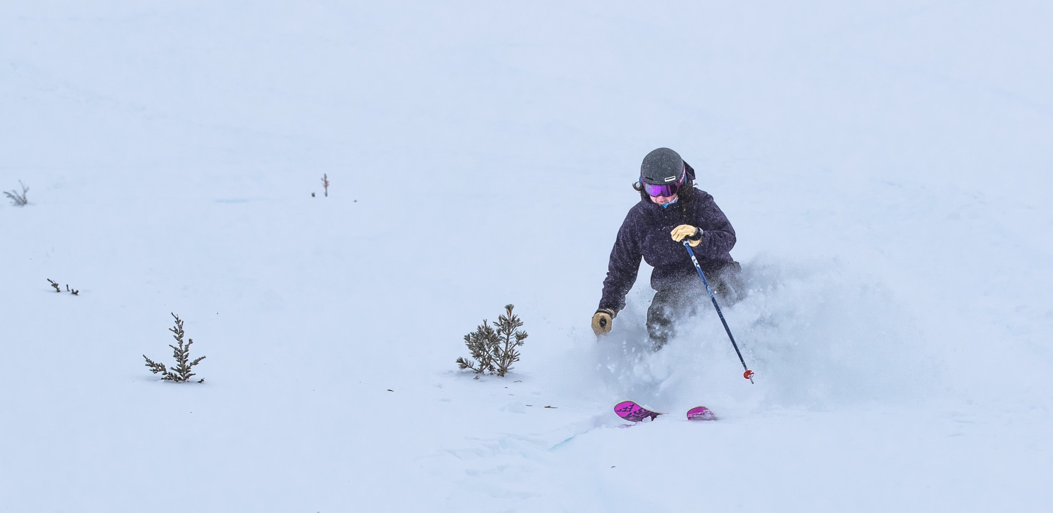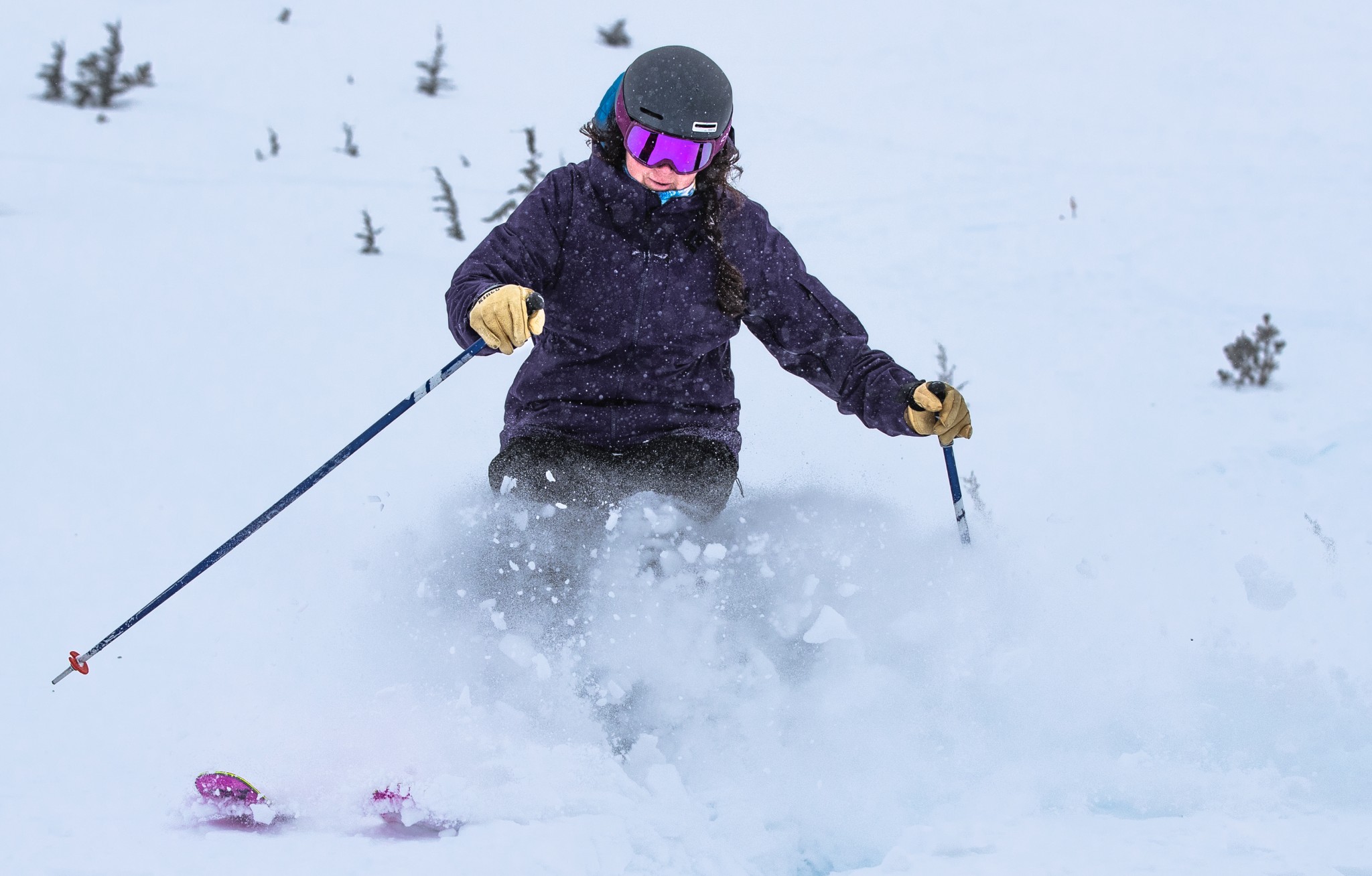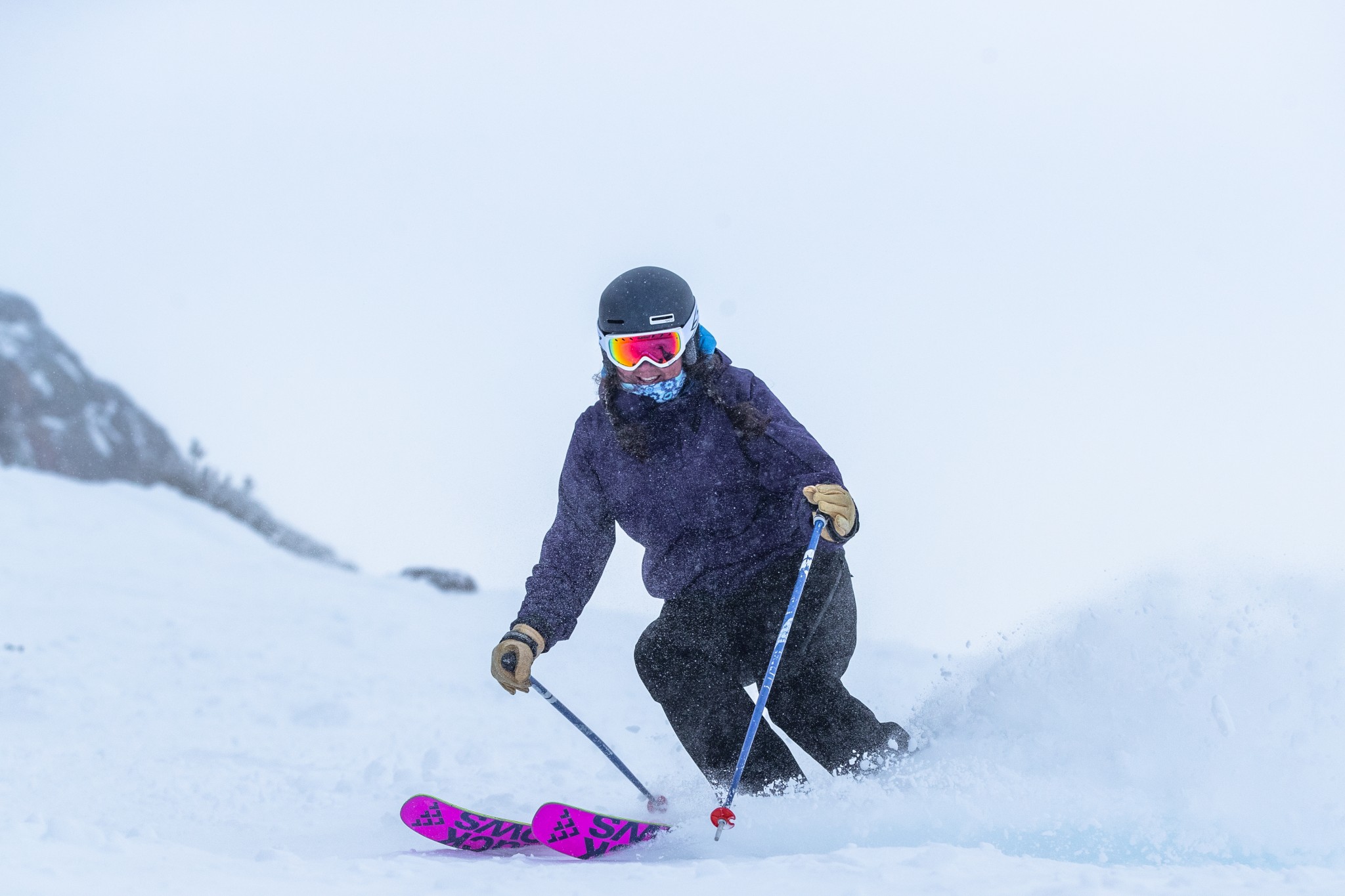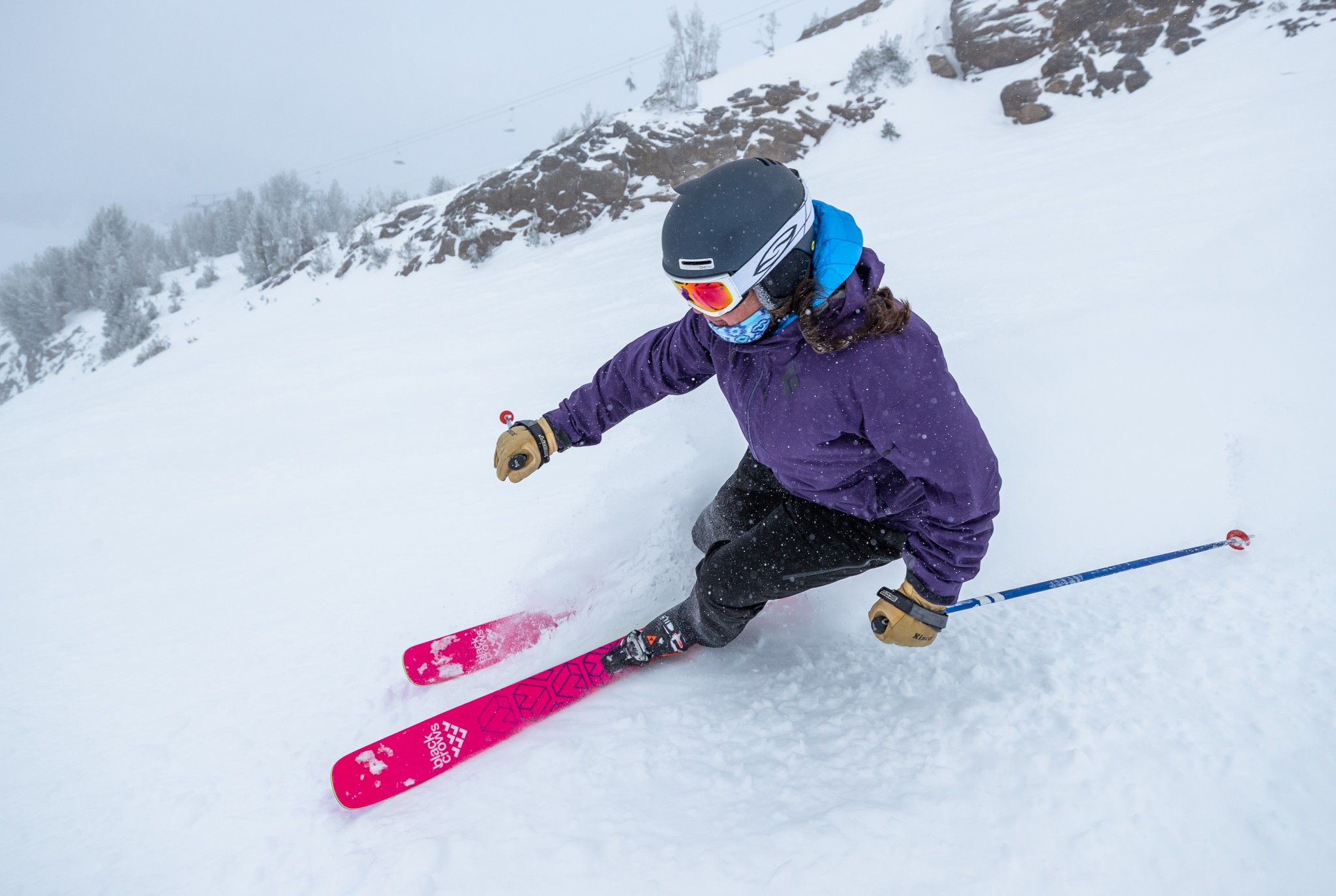 Even our testers who were unaccustomed to this ski shape had to admit that it performed well in the deep stuff. There is still a tendency for the tips to diverge slightly, which is tricky to mediate in the powder, where we're trying to be more two-footed. Overall, however, when the snow was falling, we were very happy cruising over the surface on these hot pink beasts.