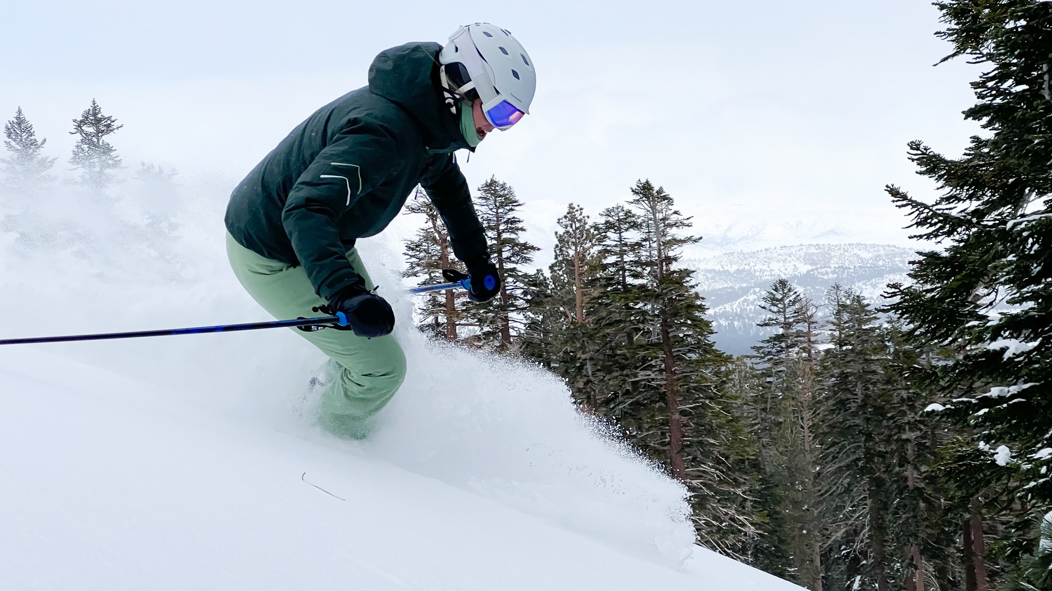 The prominent shovel tip on the Ranger 102 might bounce around on hardpack, but it is definitely a boon in powder. Its flotation is on par with many of the better-ranking skis in this metric, and our testers enjoyed bouncing and soaring through deep powder fields on this turquoise dream. The length of the turn radius makes the Ranger 102 a great option for big, open bowls in deep snow. But when things get a bit tighter in trees or steep chutes, this ski is less nimble and more difficult to force into a tighter turn.