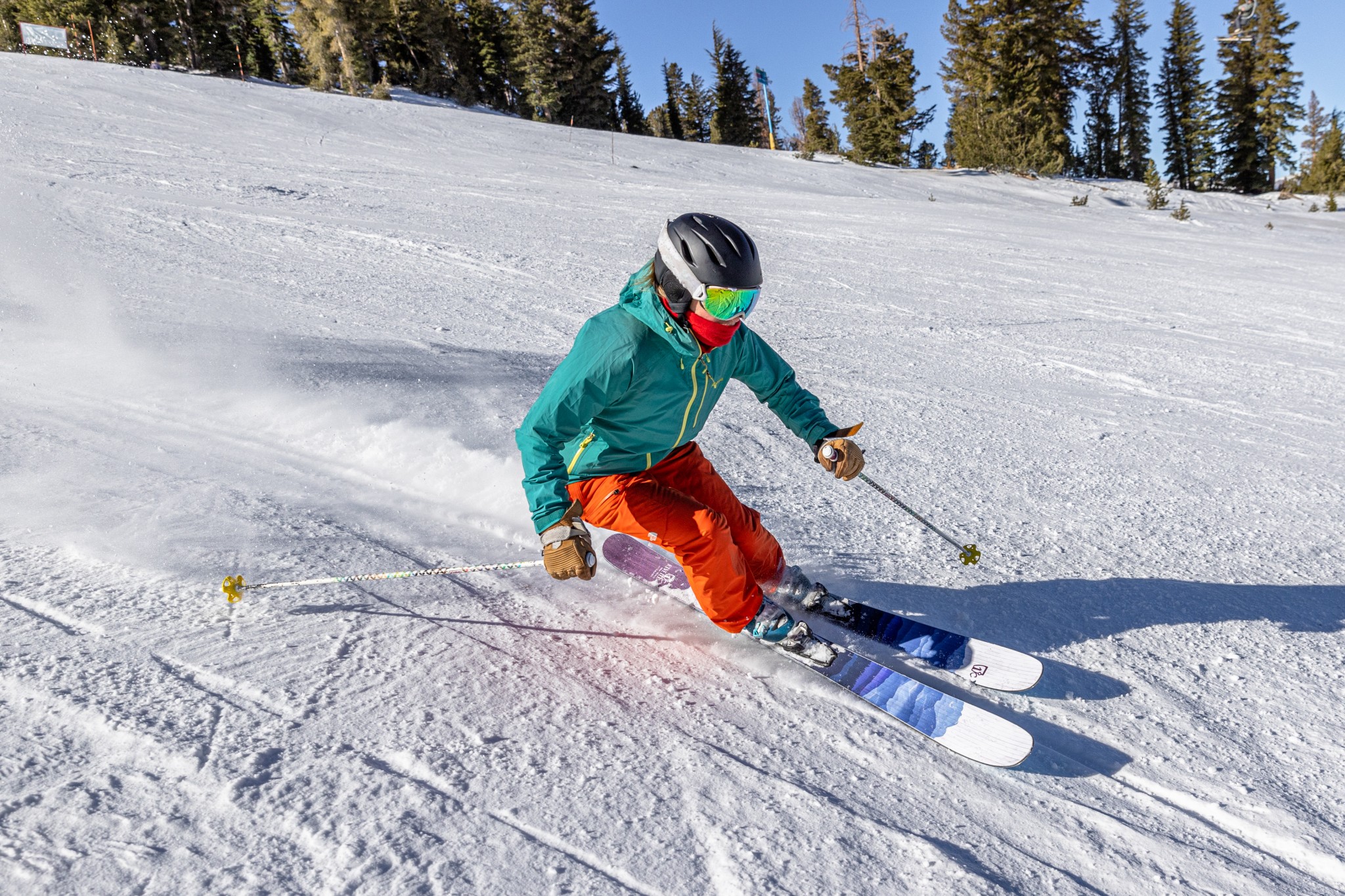 We enjoyed carving the Riveter 95 so much more than we thought we would. This ski holds an edge better than most skis with a similar softer flex, and the turn radius was much tighter than expected. Our testers found that the ski moved rapidly from edge to edge, in part due to its rebound powered by 5 millimeters of camber underfoot. The Riveter 95 truly springs from one short carved arc to the next. Our testers all agreed that it feels more like a 14-meter radius in the 169-centimeter length (as opposed to the printed 16 meters), giving it a very lively sensation. Because it is quite soft, even a small, lightweight skier should be able to bend this ski, arc a clean carve, and feel it bounce back afterward.