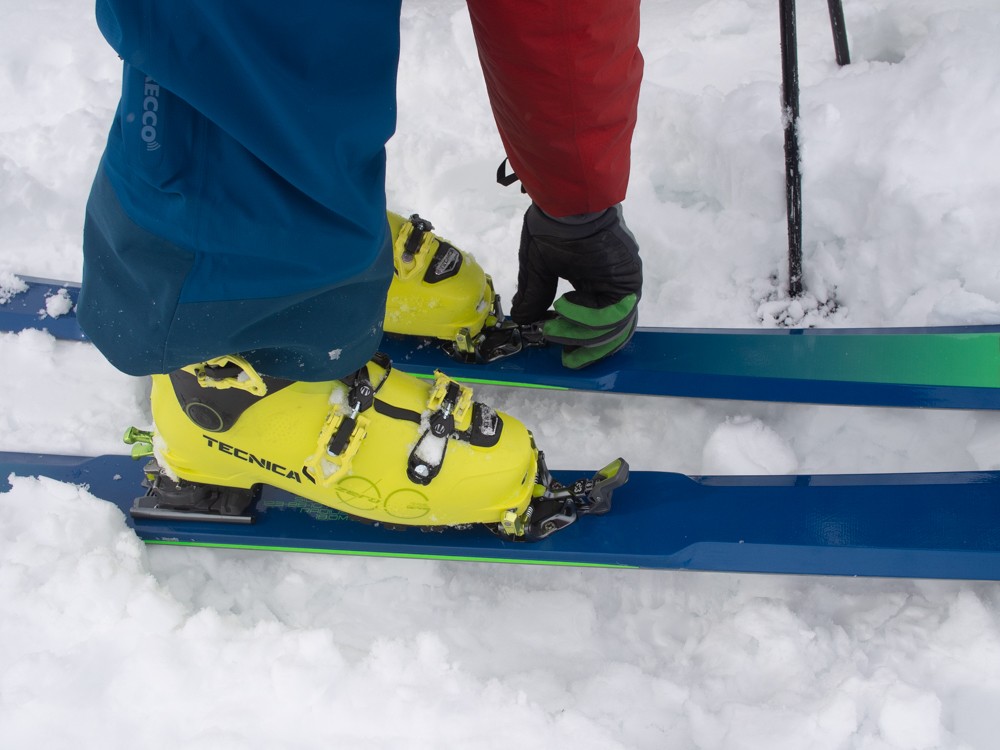 Transitions, adjustments, getting in and out; how does the Zed 12 do? Transitions use the proven method of twisting the heel piece 90 degrees (in either direction). Once in touring mode, the heel lifters can be adjusted between three settings with your ski pole. If you need to adjust release, both lateral and vertical are accomplished with one aft screw. Just below that screw is one for adjusting the length. Length is measured with the “kiss” method, requiring no spacer or tool for measurement. Stepping in and out is almost exactly the same as the vast majority of touring tech bindings. The good news is that we found the “default mode” spring tension to be enough to keep the ski on your foot in all but the most rigorous of skinning terrain. No need to lock those toes until the skinning is legit.