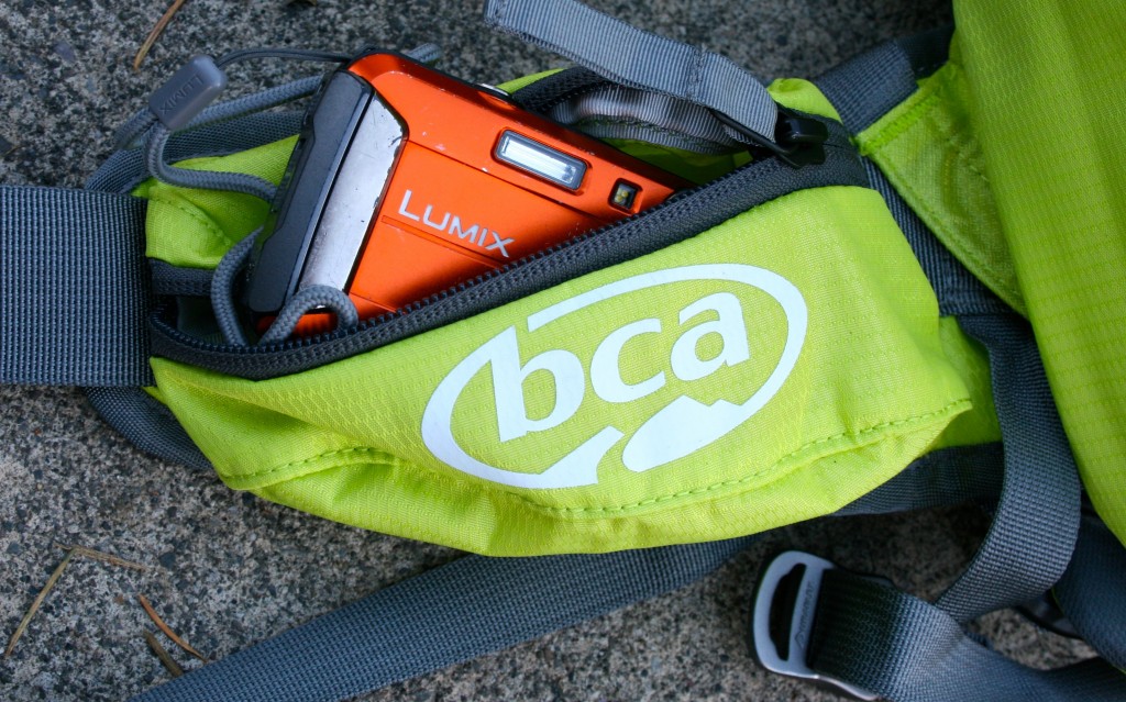 The Float 22 features a single, large zippered hip belt pocket that is great for ski straps, a couple (yes a couple) Snickers bars, an Inclinometer, or a traditional point and shoot camera. We loved being able to keep a camera in the pocket for quick shots. The Float 22 also features an internal mesh pocket for smaller, easily lost items.
