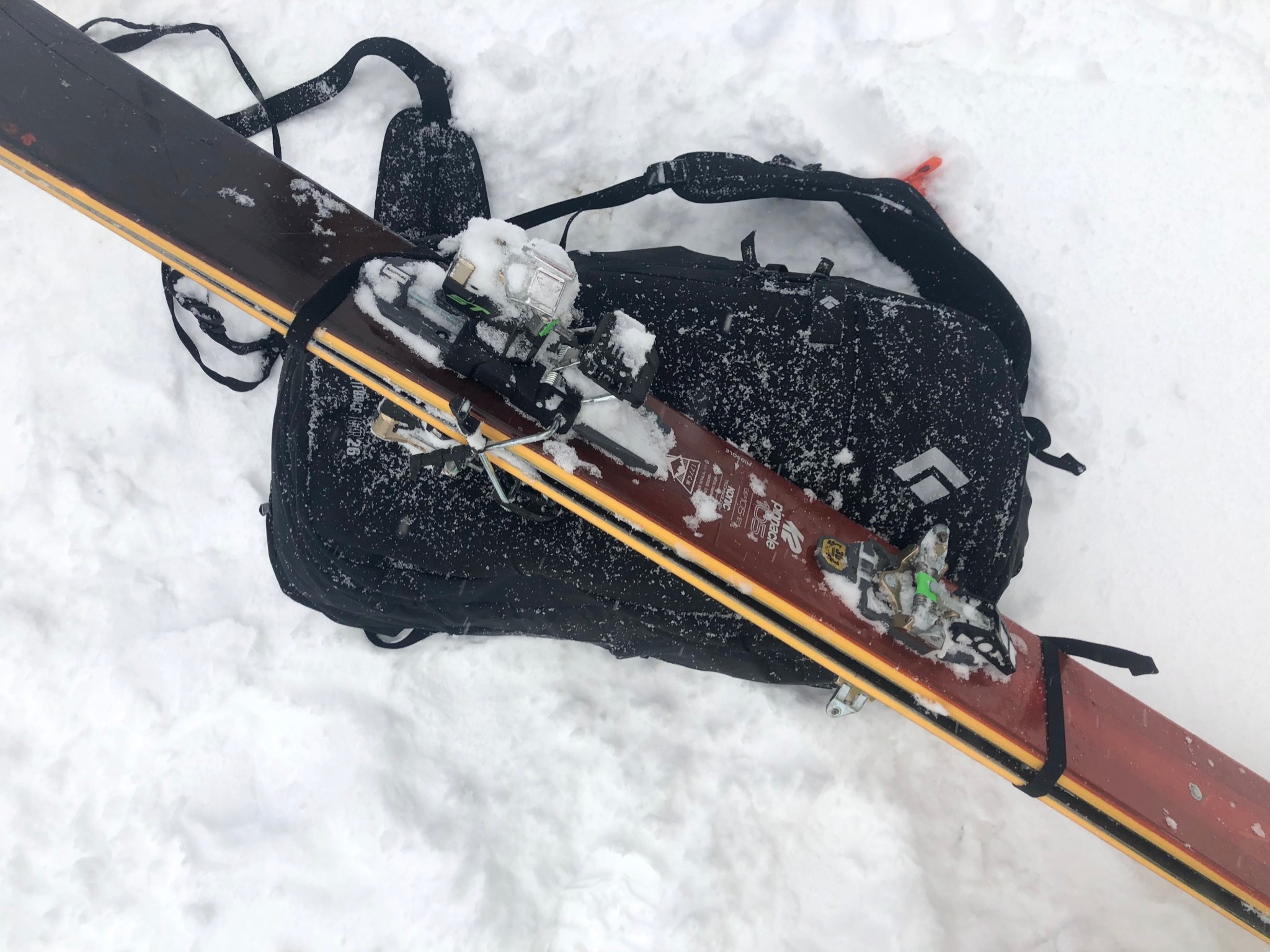 Like many airbag packs, the JetForce Tour has no A-frame style carry (as it might interfere with airbag deployment) but does have a stow-away diagonal carry system. The simple system works well, but it is a little on the tight side with wider skis, especially if they have rockered tails. It will take more effort to get them into the lower loop. While this was a slight annoyance, we were always able to put them in, and at most, it was only 10-15 seconds longer than other models.