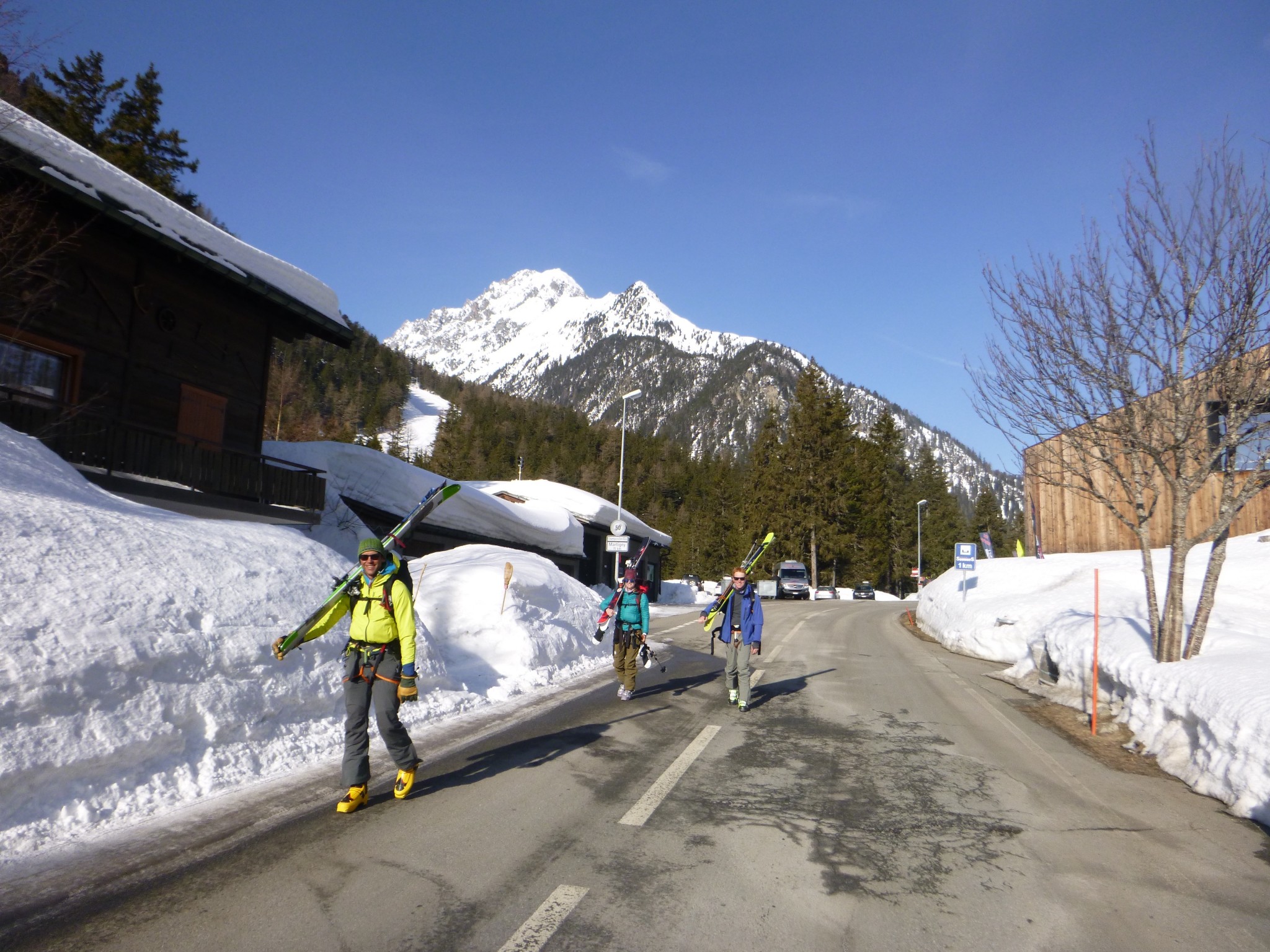John Race enjoying the comfort of his Saga 40 while walking into Champex Switzerland on day 3 of 7 of the Haute route. Credit: Ian Nicholson