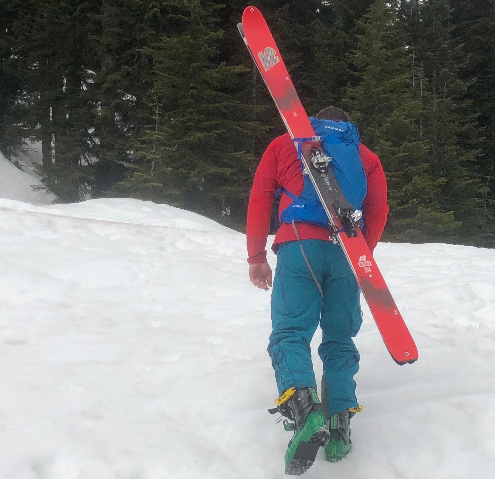 There is obvious benefit to such a minimal design. If you can make this pack work and are diligent about only bringing minimal equipment, you'll use less effort on the uphill as a result of weight savings. However, it is hard to make this pack work for a majority of day tours. We have done it, but it can't be too cold or too wet, and you have got to go light.