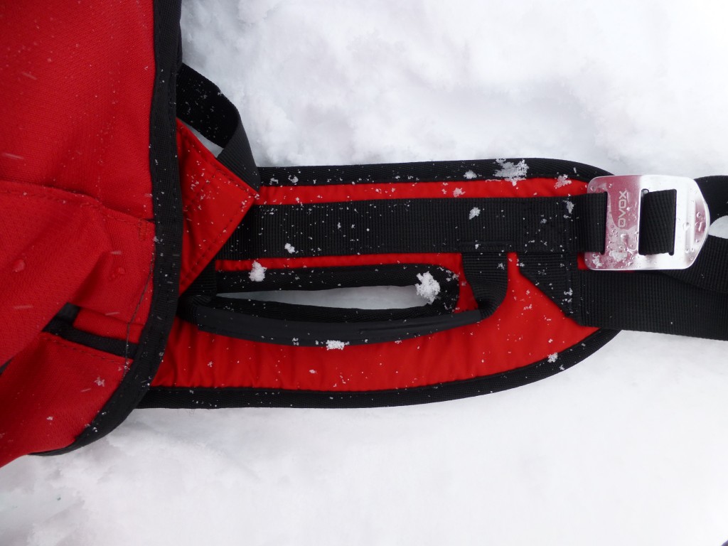 Something that is really cool and unique to the Ortovox is the metal clasp on the trigger that keeps it from accidentally triggering in your car or in a heli. When you pull the trigger of an ABS pack it creates a small explosion which then travels down the line and forces a piece of metal to puncture a hole in the gas canister, which inflates the bag.
