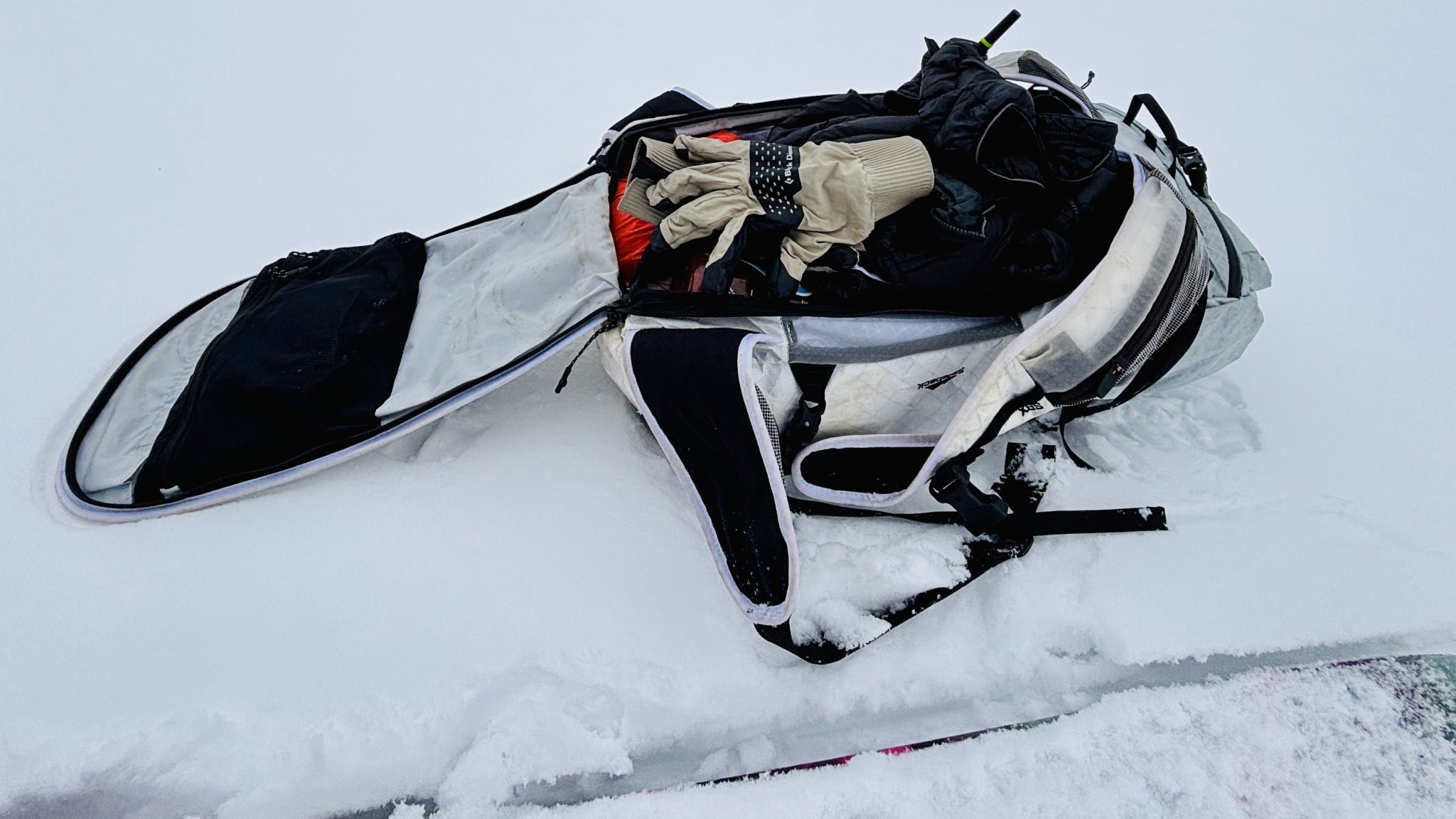 SBX technology aside, the Raide SB 30L is a highly utilitarian backcountry pack. The unique construction and design make it feel like this pack offers much more capacity than just 30 liters. The roll-top maximizes space, while multiple access points allow me to strategically pack so that I can always access my important gear (and snacks). Compared to other airbag packs I tested, the Safeback system takes up significantly less space, which opens up more room for other essentials. I had no issues packing the SB 30L for a day of ski guiding; it was easy to carry essentials like a rescue sled, extra layers, and a first aid kit, and have plenty of room left for snacks and water.