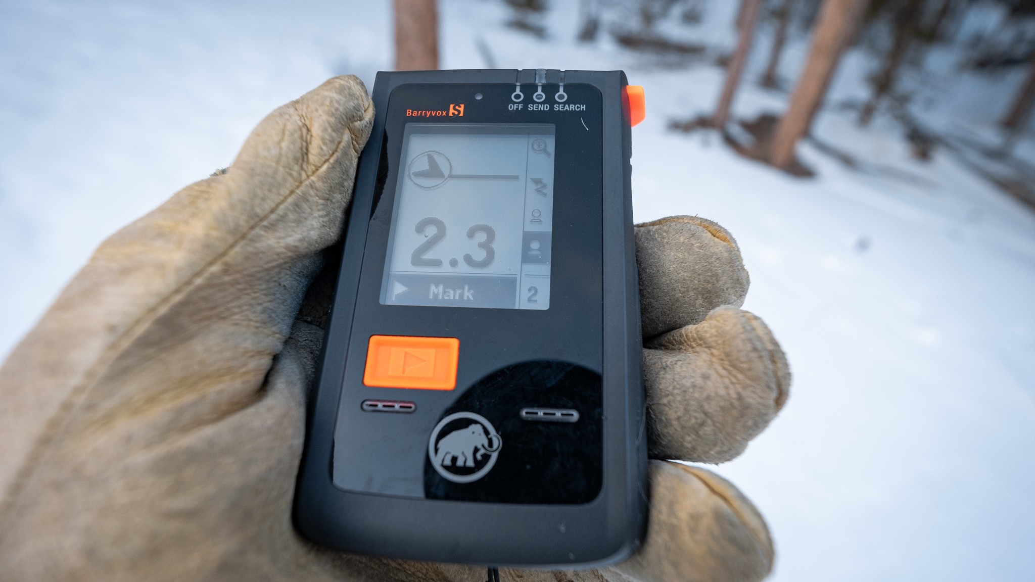 In the coarse search phase, we experienced little to no lag with the Barryvox S and were able to follow it into a target at any reasonable pace. With other beacons that have a similarly long range, we sometimes find that the beacon lags at the maximum extent of its range while trying to lock in an accurate measure of distance. The Barryvox S, on the other hand, handled this quite well, as we noticed only small jumps in the distance reading upon first picking up a signal.