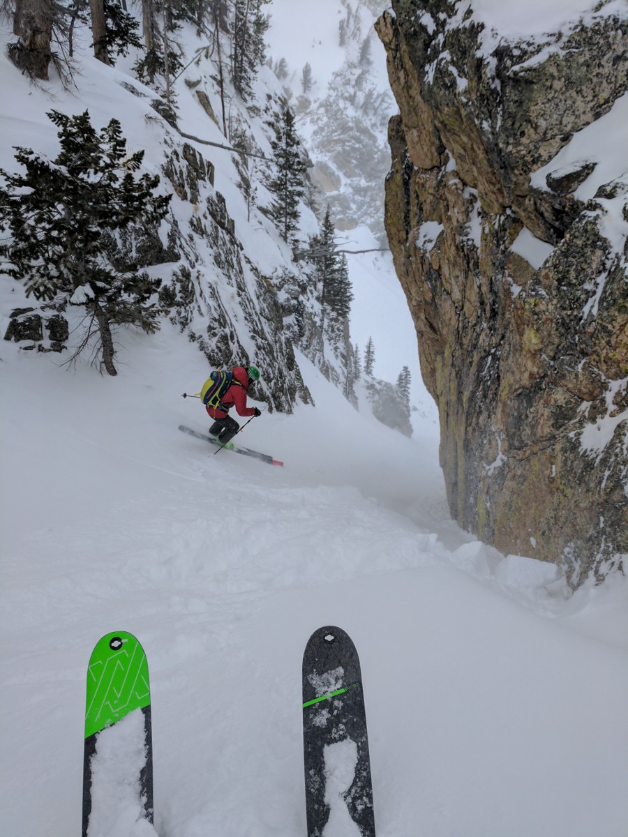 Jed came to this AT ski gear review through the back door. He nordic skied as a kid, learned telemark in the 90s when that was the best way to access the backcountry, and was an early adopter of tech style bindings and “skimo race” style boots for all-around ski touring. He's never skied in boots weighing more than 7 pounds. He's never skied in overlap cuff boots. He's never skied in boots he couldn't drive a stick shift with. His downhill skiing shows it, but he's a dedicated human-powered skier. His gear choices have always been in that vein. Now, when we “forced” him to try these Lange boots, he wasn't stoked.