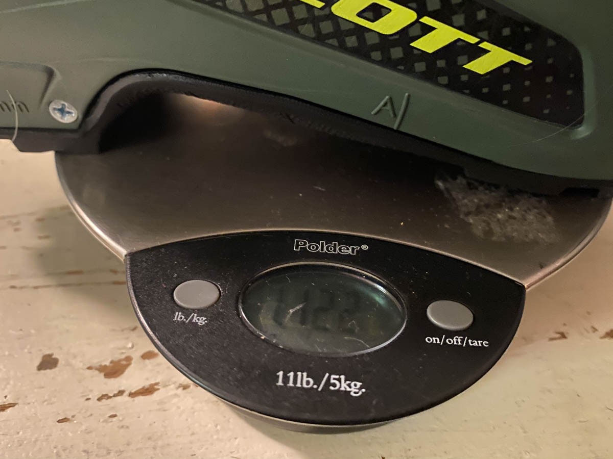 The Scott Freeguide Carbon weighs 6 lbs 5 oz for the pair. Convention is fast becoming that we share backcountry ski gear weights in grams and per foot. The Freeguide weighs 1432g per boot, on our calibrated, cross-reverenced scale. Further, many people mix and match different liners into their boots and therefore want to know how much the shell alone weighs. The shell weighs 1122g and the liner weighs 310g.