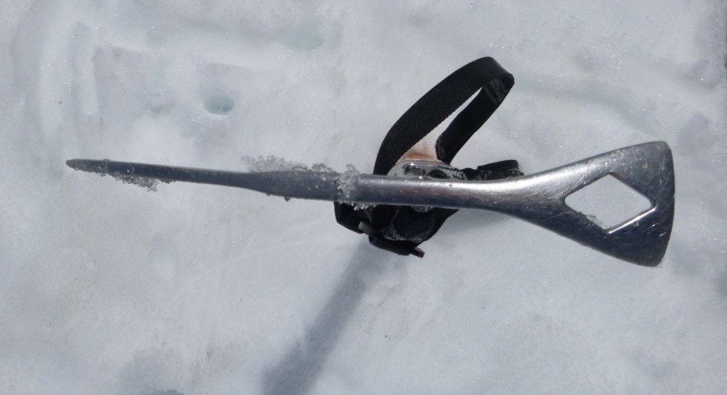 The Raven Ultra is CEN-B rated, performing in a “T-slot” or deadman set-up for crevasse rescue, or anchoring while belaying. The hole in the top of its head is a great size and easily accommodates most carabiners. The Raven Ultra lacks a spike, which makes the Ultra harder to drive vertically when attempting to use for self-anchoring, or as a back up while belaying on snow.