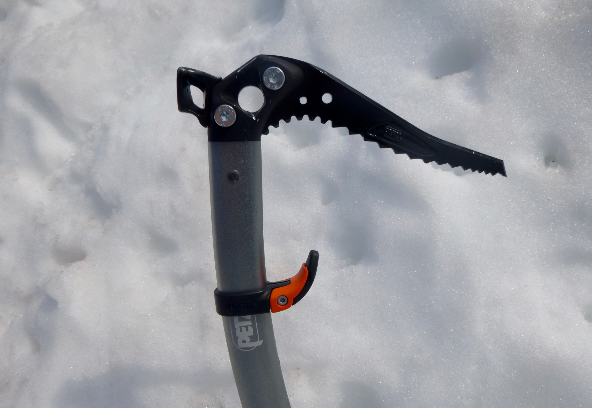 The Sum'Tec offers high performance in this metric. For “T-slots” or deadman style anchors, the Sum'Tec carries a CEN-T rated shaft and is more than adequate for use as an improvised anchor during crevasse rescue or for belaying of it while ascending steep snow or ice. The hole in the head of the axe is easy to clip and will load carabiners in a decent orientation. The Sum'Tec's spike is also exceptionally well-designed and helps facilitate driving the axe in vertically; this makes it easier to back-up a seated stance, improve the strength of a deadman picket as a Saxon's cross, or increase a climber's security in Piolet Manche (self-belay position).