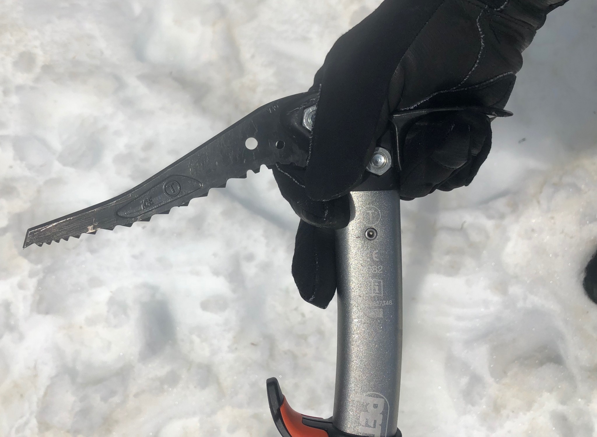 Comfort to carry is one category where the Sum'Tec underperformed, though average overall. Like many European based models we tested, the Sum'Tec is more comfortable in self-arrest/Piolet Canne (pick-forward) position than it is in self-belay/pick backward. The overall shape of the head is excellent, but when using with bare hands or thin gloves in self-arrest position, you can feel some of the teeth that are closest to the shaft.
