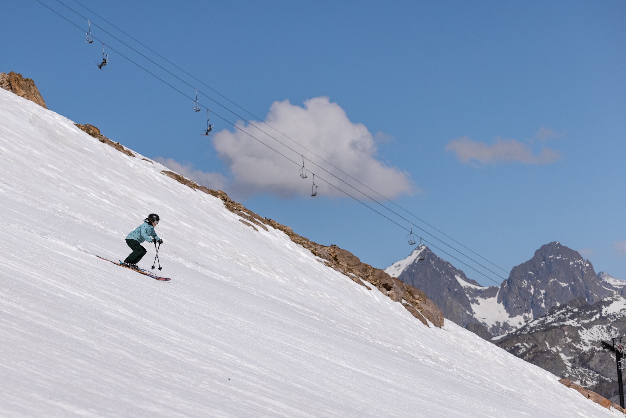 The RX 110 LV, seen here with Mount Ritter and Banner on Mammoth Mountain, proving her all mountain capabilities. Credit: Scott Rokis