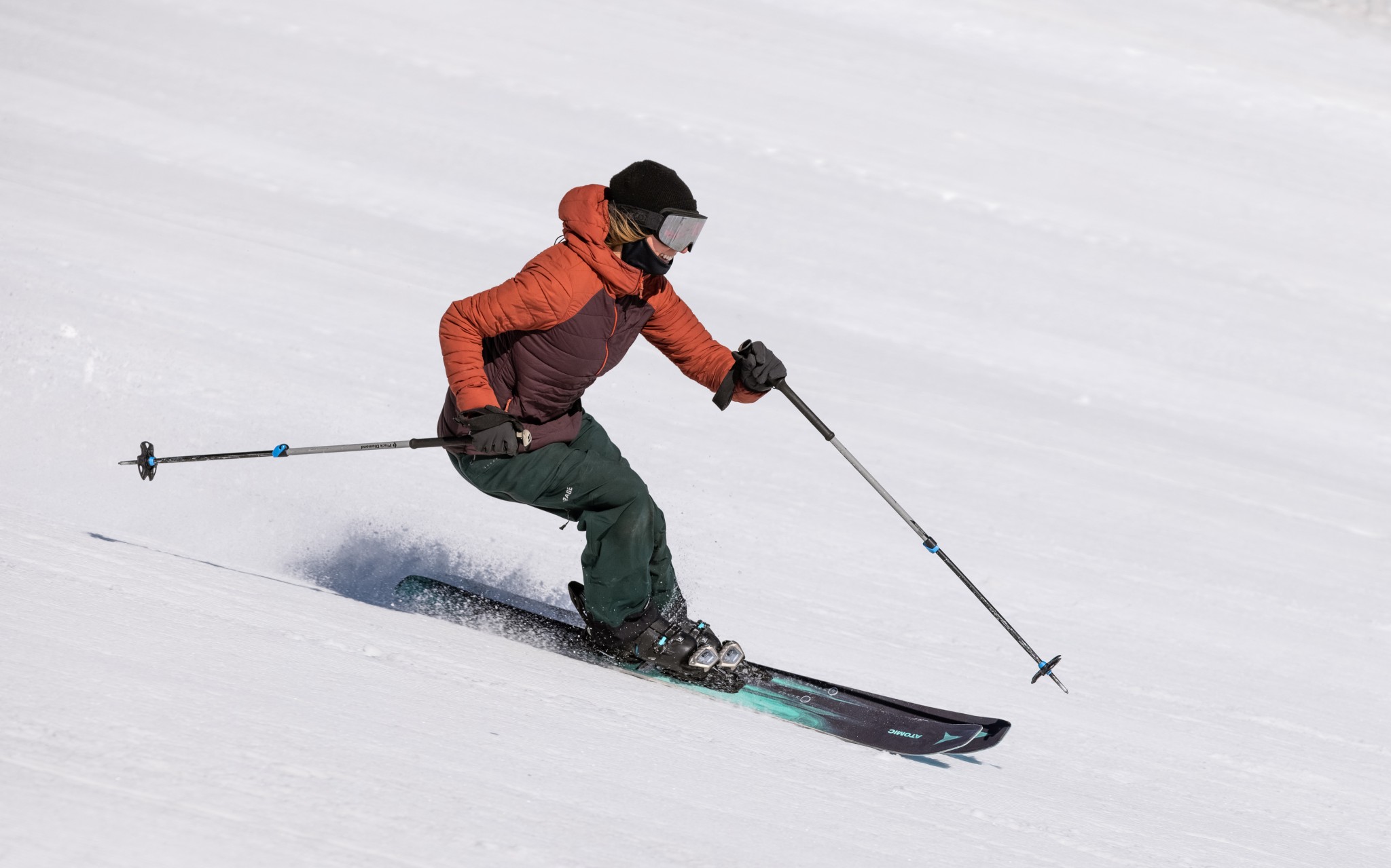 The RX LV wasn't the perfect fit but it didn't hinder performance. Our shorter, petite testers found it to be more approachable and easy-to-ski compared to the higher flex boots with higher cuffs. Credit: Scott Rokis