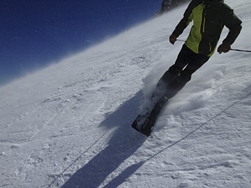 The Lange RX 120 offers excellent downhill performance and was amongst the best performers in this metric. The flex feels consistent and stiff while the RX 120's close fit allows for excellent responsiveness. The low-profile design increases sensitivity in the boot. A soft boot board in the bottom of the shell combined with rubberized soles to do a good job of dampened vibrations from hard snow.