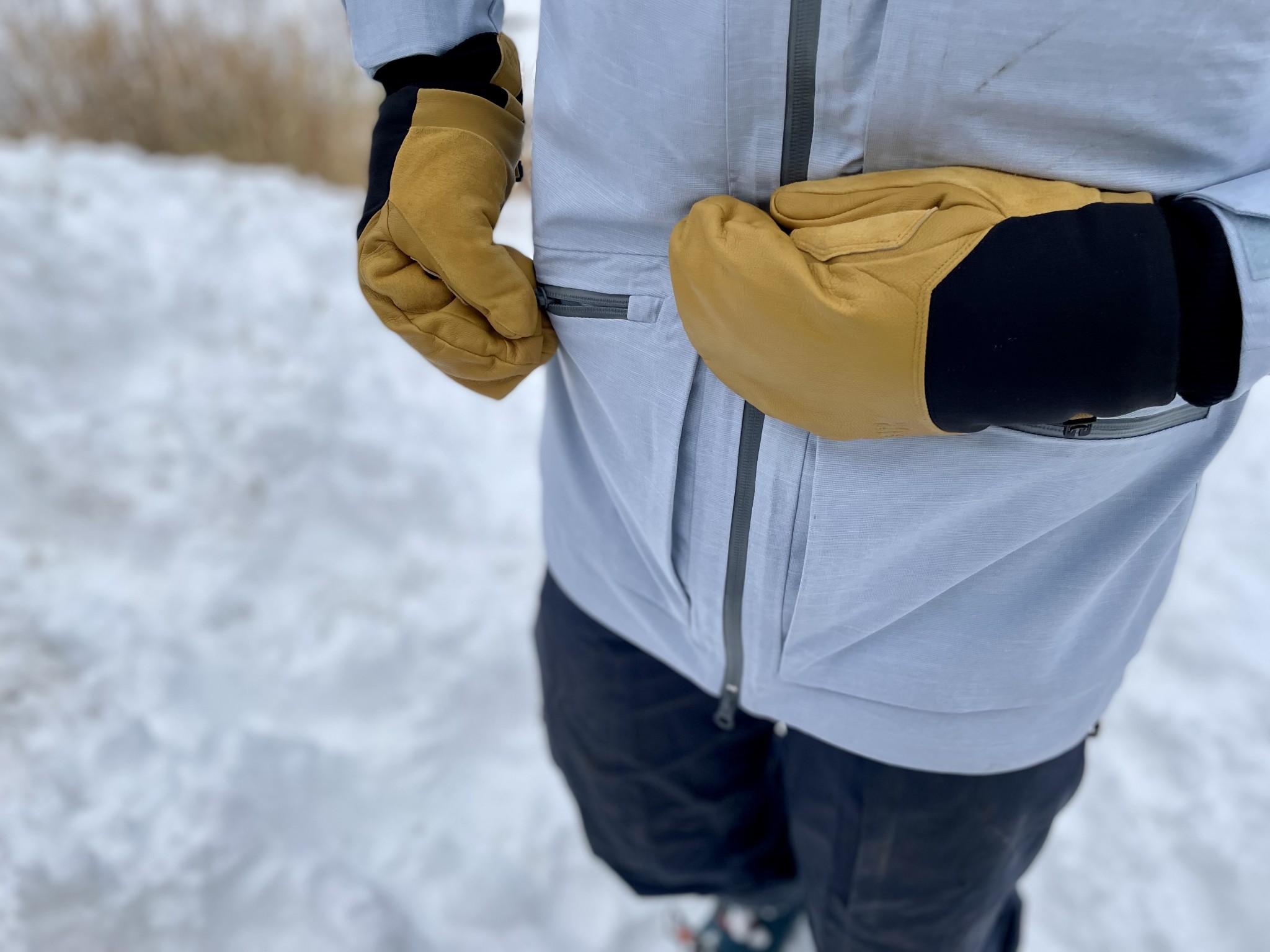 We found that we had a fairly good ability to adjust gear, zip zippers, and handle ropes with the Guide Mitten compared to other mittens. The nature of having four fingers in one pocket still hinders dexterity compared to gloves, of course. The lack of heavy insulation, however, allows for some individual motion and the use of fingers.