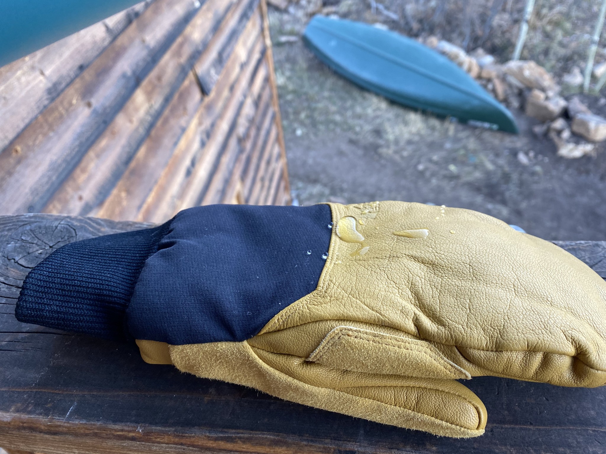 The overall water resistance of the REI Guide Mitten comes from an included water-resistant treatment that needs to be applied to the leather. Without this treatment, we found that water seeps through the seams of this mitten and the leather itself begins to absorb water. This also begins to happen as the treatment wears off and is due to be reapplied. This mitten requires more maintenance than most other mittens we have tested.