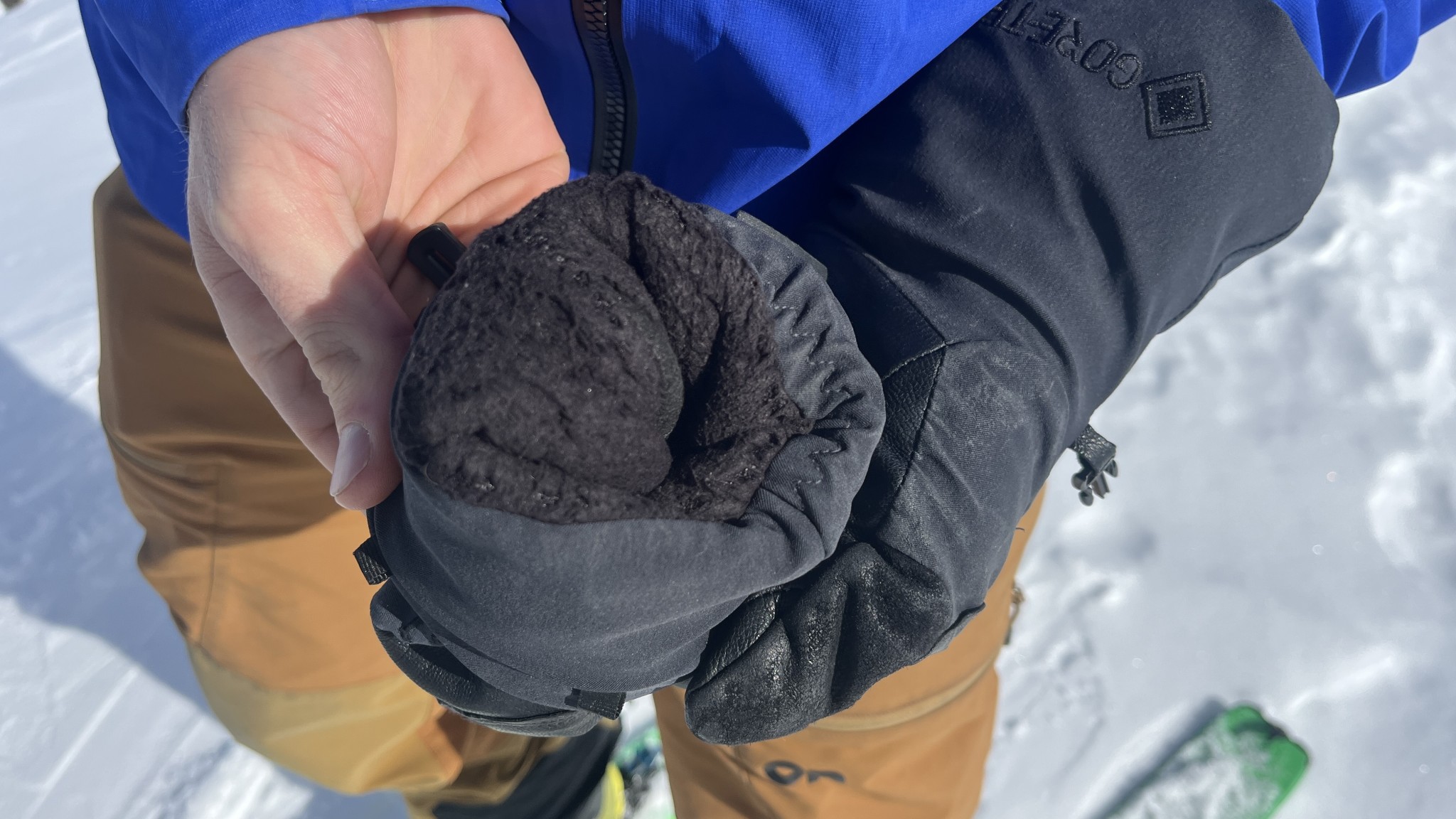 Given the amount of insulation and the waterproof membrane stuffed into the body of these gloves, we were impressed by the amount of dexterity they were able to maintain. We were able to perform almost all of the detailed tasks we attempted, like pulling zippers and clipping buckles, and our handwriting was impeccable while wearing them. It was hard to tie our bootlaces, but for most outdoor tasks, these gloves have plenty of dexterity.