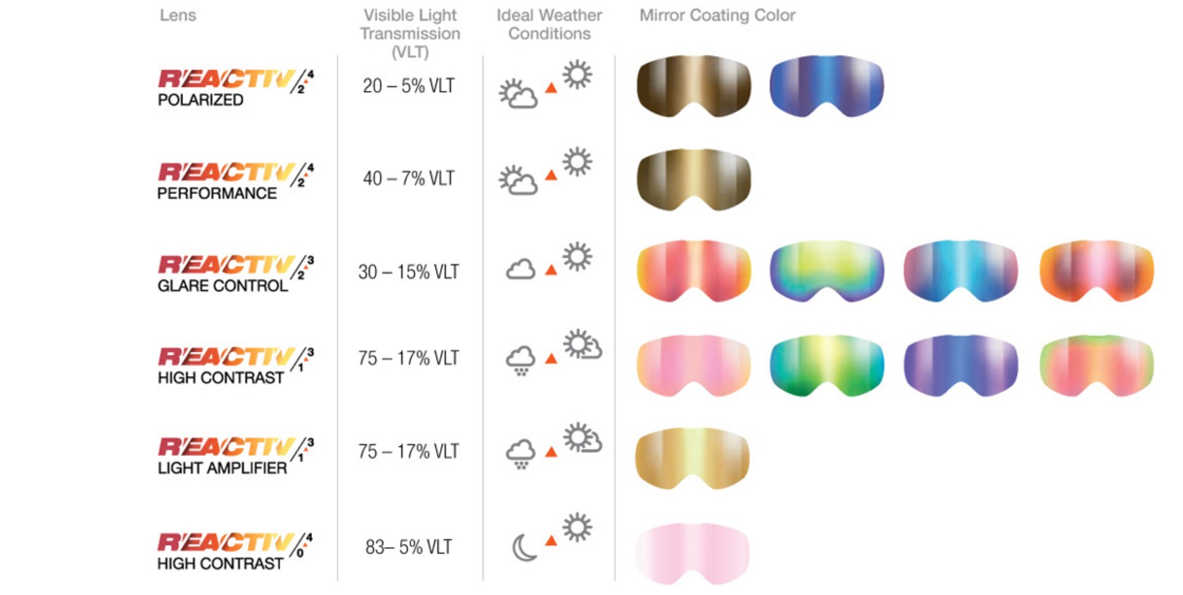 | Bottom Line | A photochromatic goggle that offers a wide VLT range and a large field of view in a casual but stylish design |