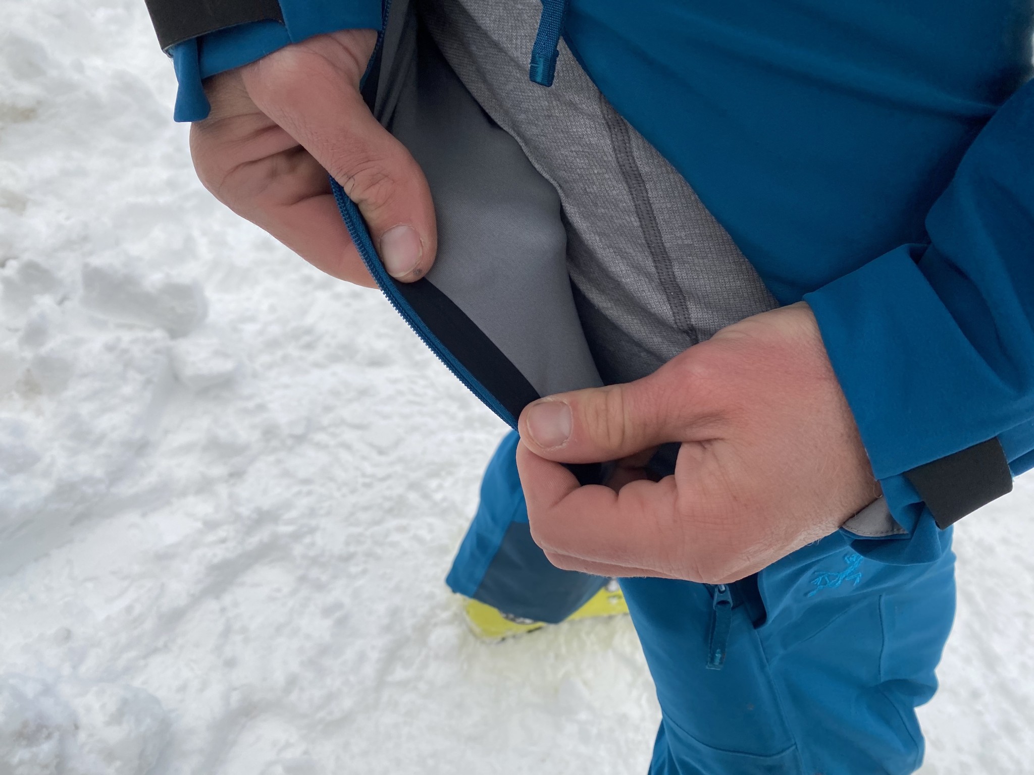 The shell fabric is treated with a DWR to bead water and prevent the material from getting soaked, but after some time, this treatment will wear off, and the shell won't be waterproof. The zippers aren't waterproof either, which gives water an additional entry point. To be fair, these pants aren't designed to be waterproof, sacrificing weather resistance for huge gains in comfort and ventilation. But if you are looking for one pair of pants for every day of the winter, these pants won't work for you.