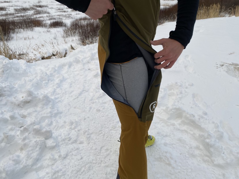 The Backcountry Cardiac has a long vent on the outside of each thigh, as well as a shorter vent on the inside of each thigh. This is our favorite configuration for vents because it allows air to flow through the pant, picking up and moisture and heat on its way through. This is useful, especially in a bib, because the pants cover the torso and chest, which is the warmest part of the body. Also, the Gore-Tex Pro membrane isn't as breathable as other technical membranes, and the dual vent system helped our testers ditch heat quickly.