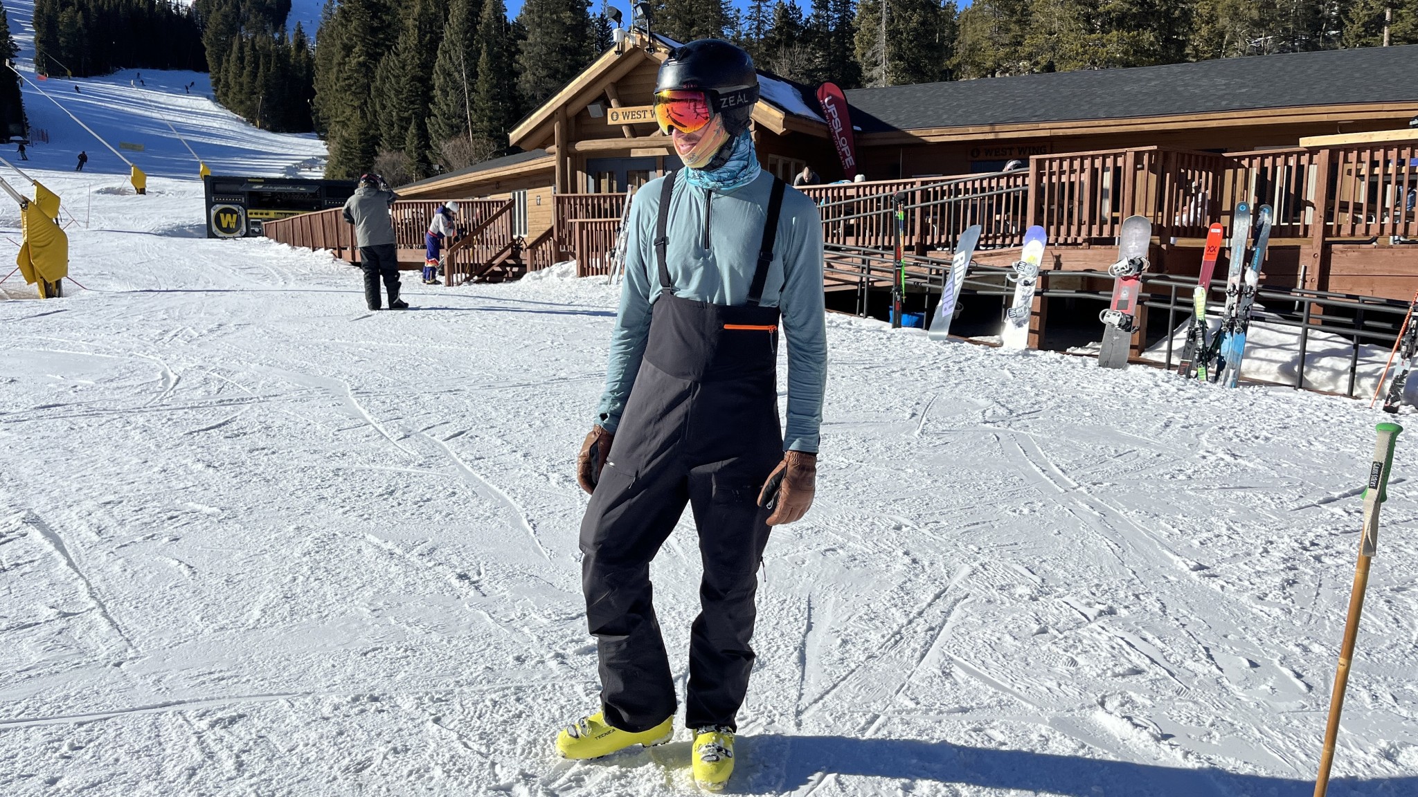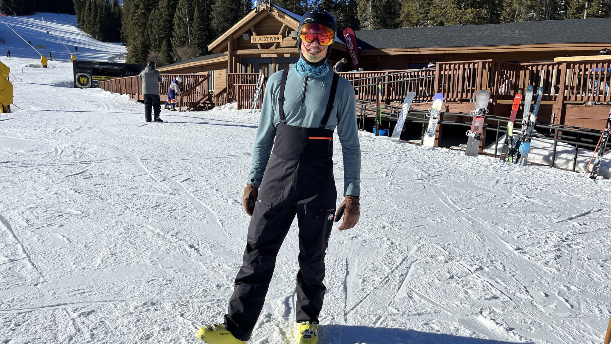 Bibs often trap more warm air around the critical torso area than normal pants, and the Haldigrat is no exception. However, rather than capturing heat in the upper body with a thick, less breathable hard shell “pouch,” the Haldigrat adds warmth by using the torso bib as an additional polyester baselayer. In our testing, this added a small amount of overall warmth compared to a hardshell lower body pant.