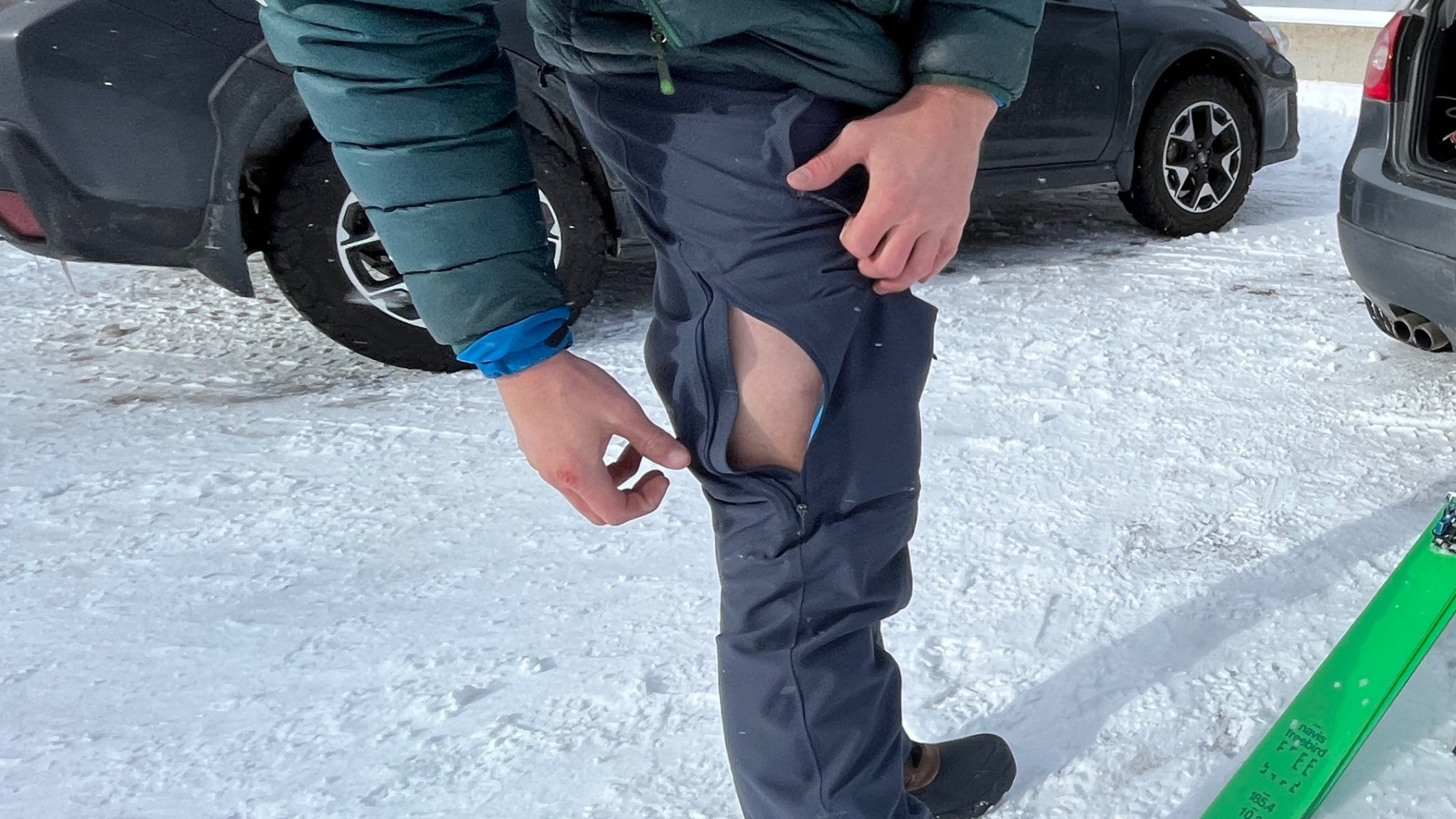 The Upstride's softshell fabric is relatively breathable compared to most other ski pants, but compared to other softshells, these pants don't breathe as well. The fabric is on the thicker side compared to similar pants, and the transfer of air doesn't happen as easily. This has some upsides, including increased wind resistance and more suitability for use on days with bad weather. Each outer thigh features an 11-inch vent, but the vents are located low on each thigh, starting at the knee, which means they are more susceptible to powder falling into the legs when the vents are open on warmer days after big storms.