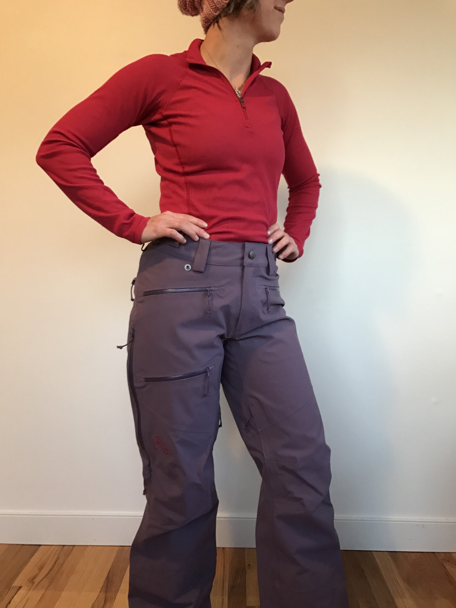 Each zipper has a pull tab big enough to grab with mittens on, so your hands stay warm while fishing for chapstick. Another personalized touch is the adjustable waist tabs, so you can choose to wear your favorite belt or leave it off. The waistband closes with a button rather than a snap like most other pants we tested. We prefer this button because it is easier to close with cold fingers. The pockets on the Nina are accessible and large.