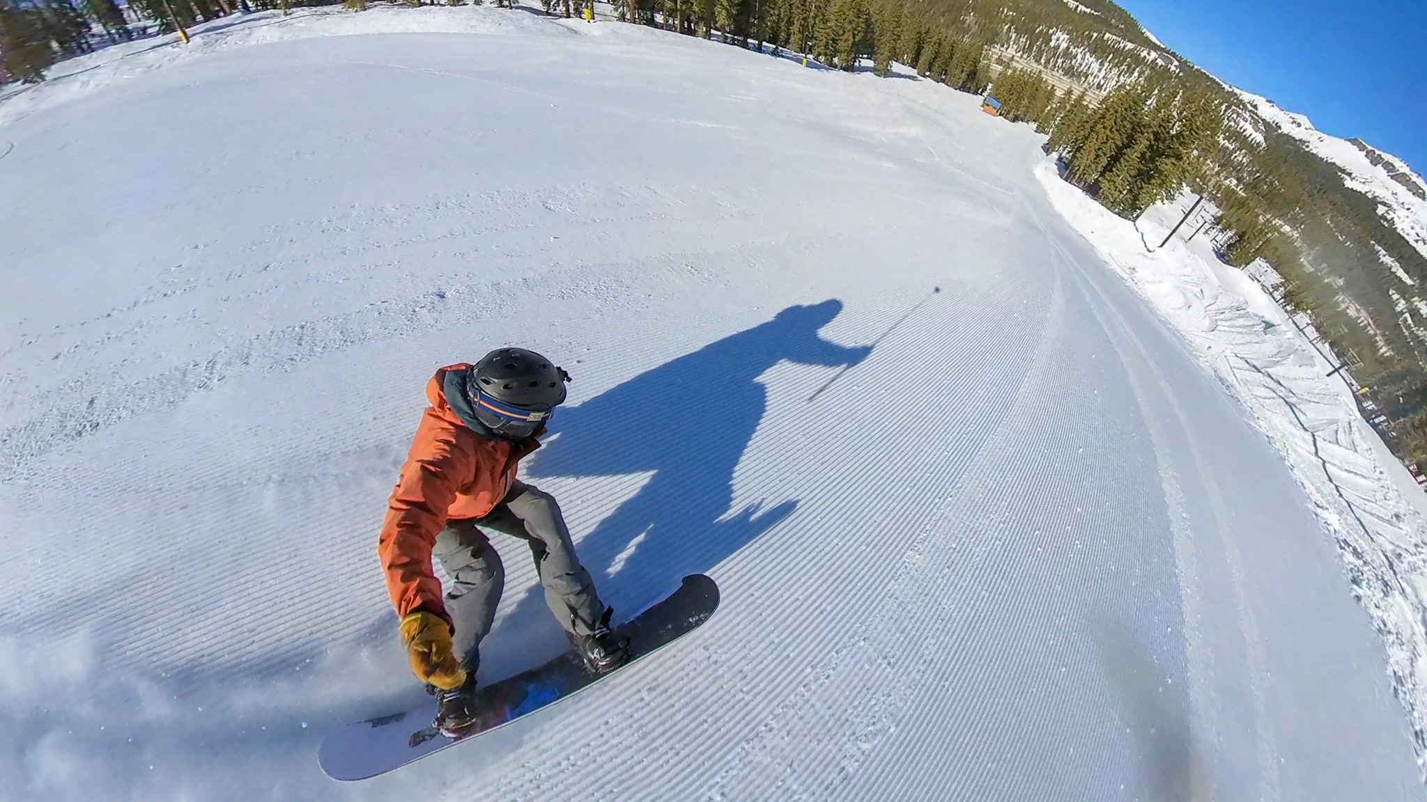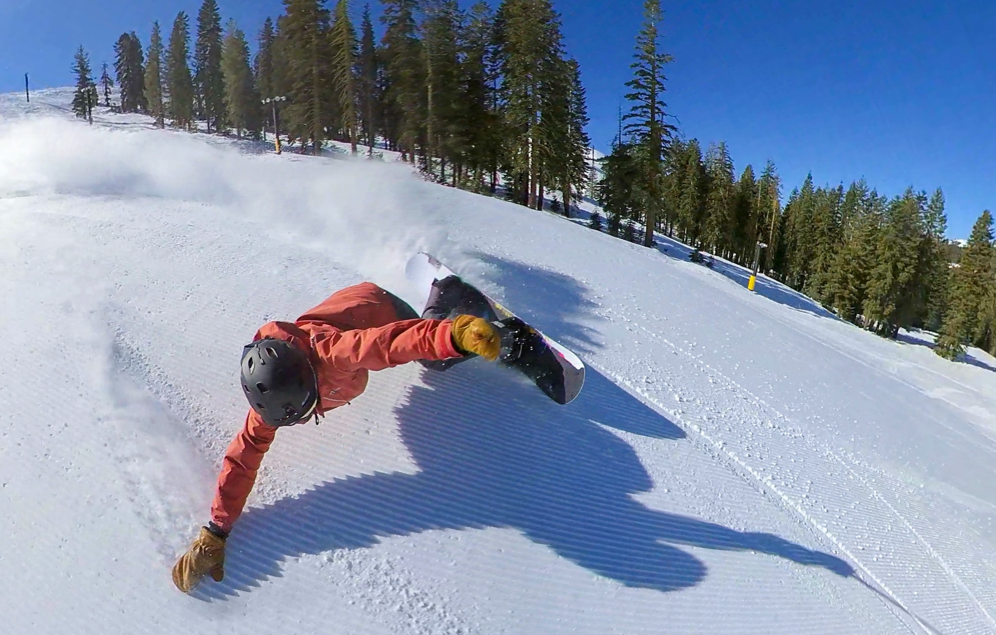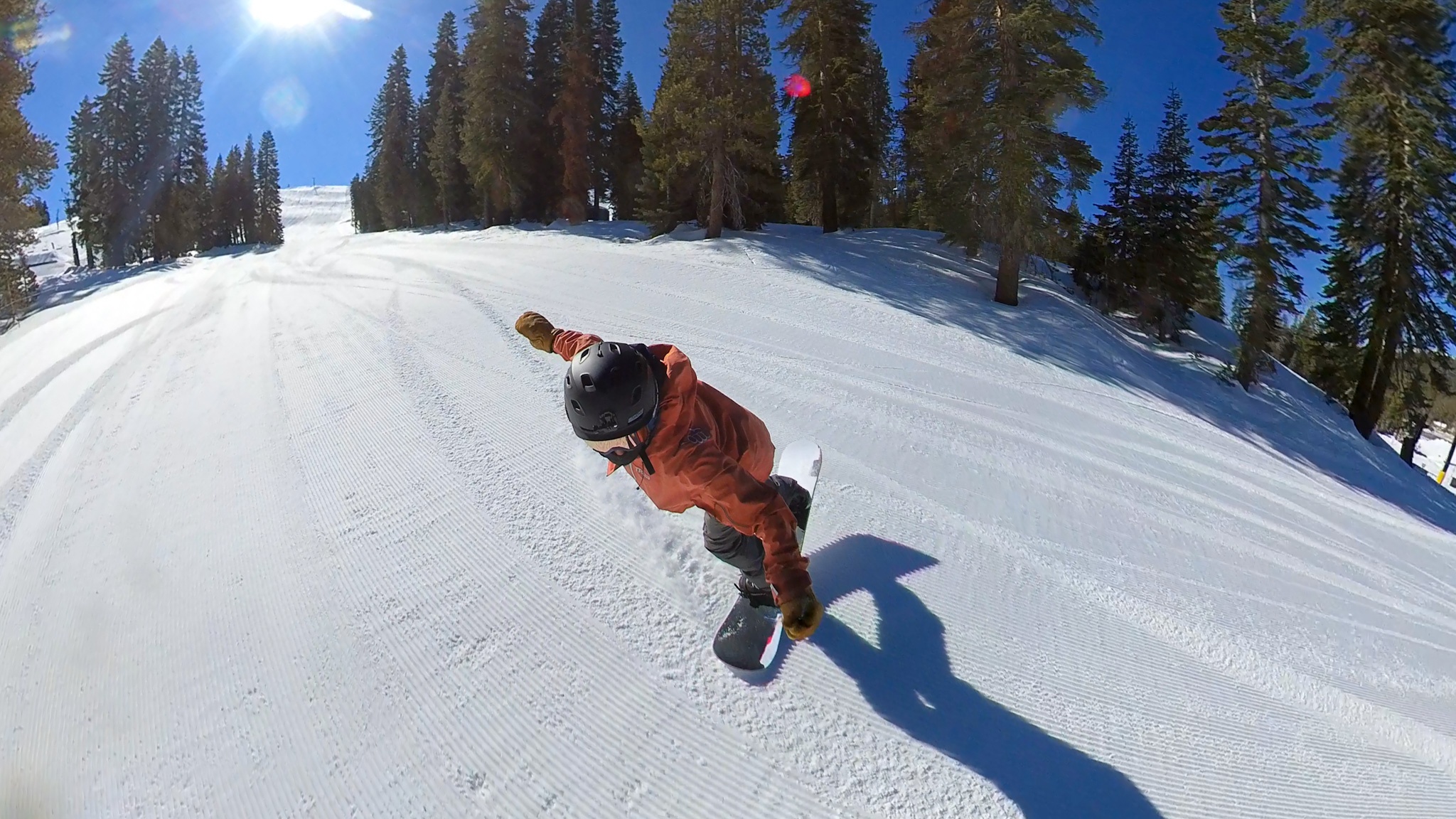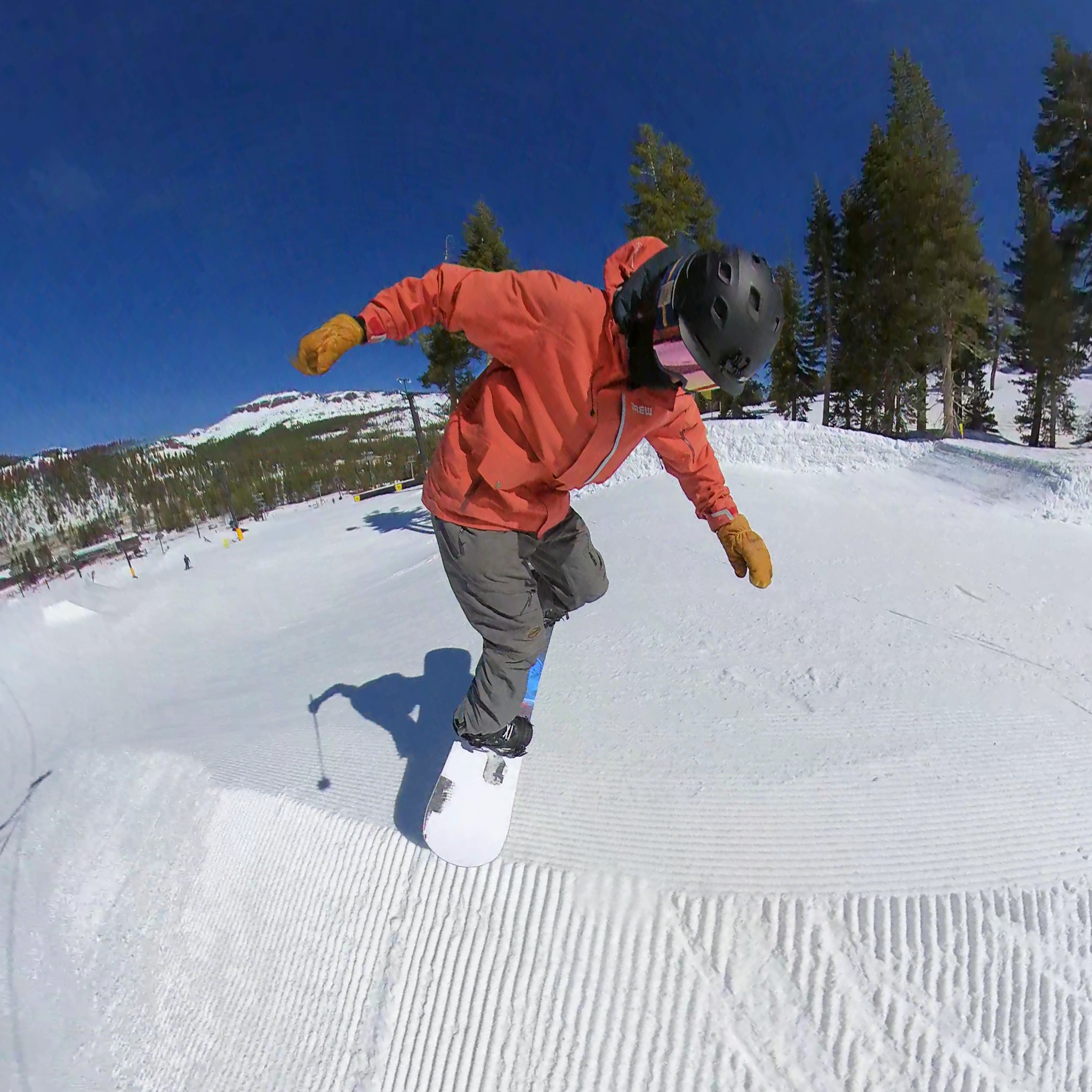 The Never Summer Proto Synthesis had one of the most fun turning styles in the review. The board's cambered tip and tail allowed it to drive through turns, while the tight sidecut and rockered middle allowed the board to disengage to slash the lip of the quarter pipe. The blended multiple radius sidecut allows the board to excel at short and medium radius turns.