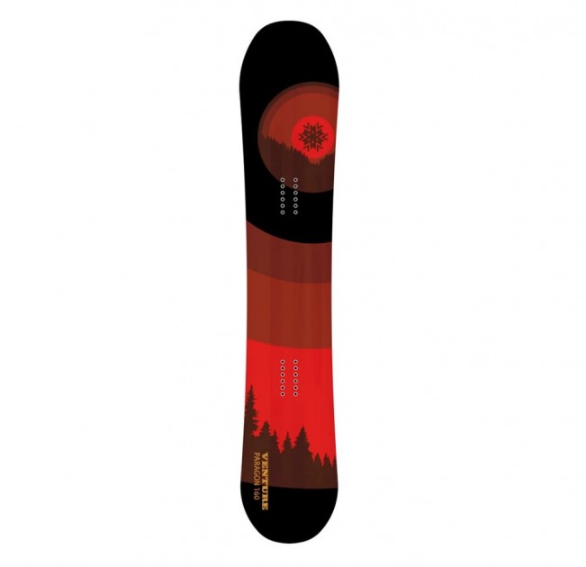 The Venture Paragon has a rockered tip and tail, with a flat camber in the middle. This gives the board a playful and versatile persona that we came to really enjoy. The Paragon is versatile in its use and user ability level.
