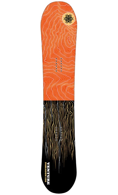 The Venture Paragon features a versatile and easy-to-ride shape that can handle most situations. Based on the design, its performance outdid our expectations, and it's a fun board to ride. It can be overwhelmed in powerful or bumpy moments. It's good for beginners to advanced riders who want one board to have fun and charge straightforward advanced terrain.