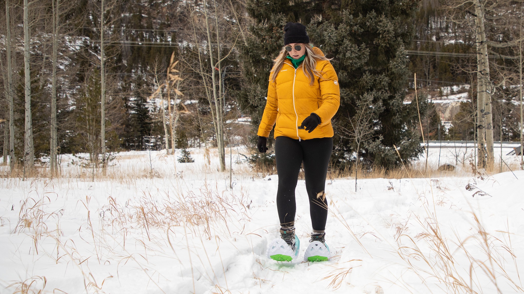 The toe side of the Eva is quite broad, which forced most of our users, petite or not, to widen their gait while walking. This is a unisex shoe with thick foam decking, which initially feels straight-up awkward. That said, they are pretty fun once you find your footing. Taking longer steps or even upping the pace to a light jog improves stride ergonomics immensely. If having a bounce in your step going down groomed winter trails sounds like your jam, this is a great option. The sneaker-like nature of the Eva makes stepping over logs or other obstacles a breeze.