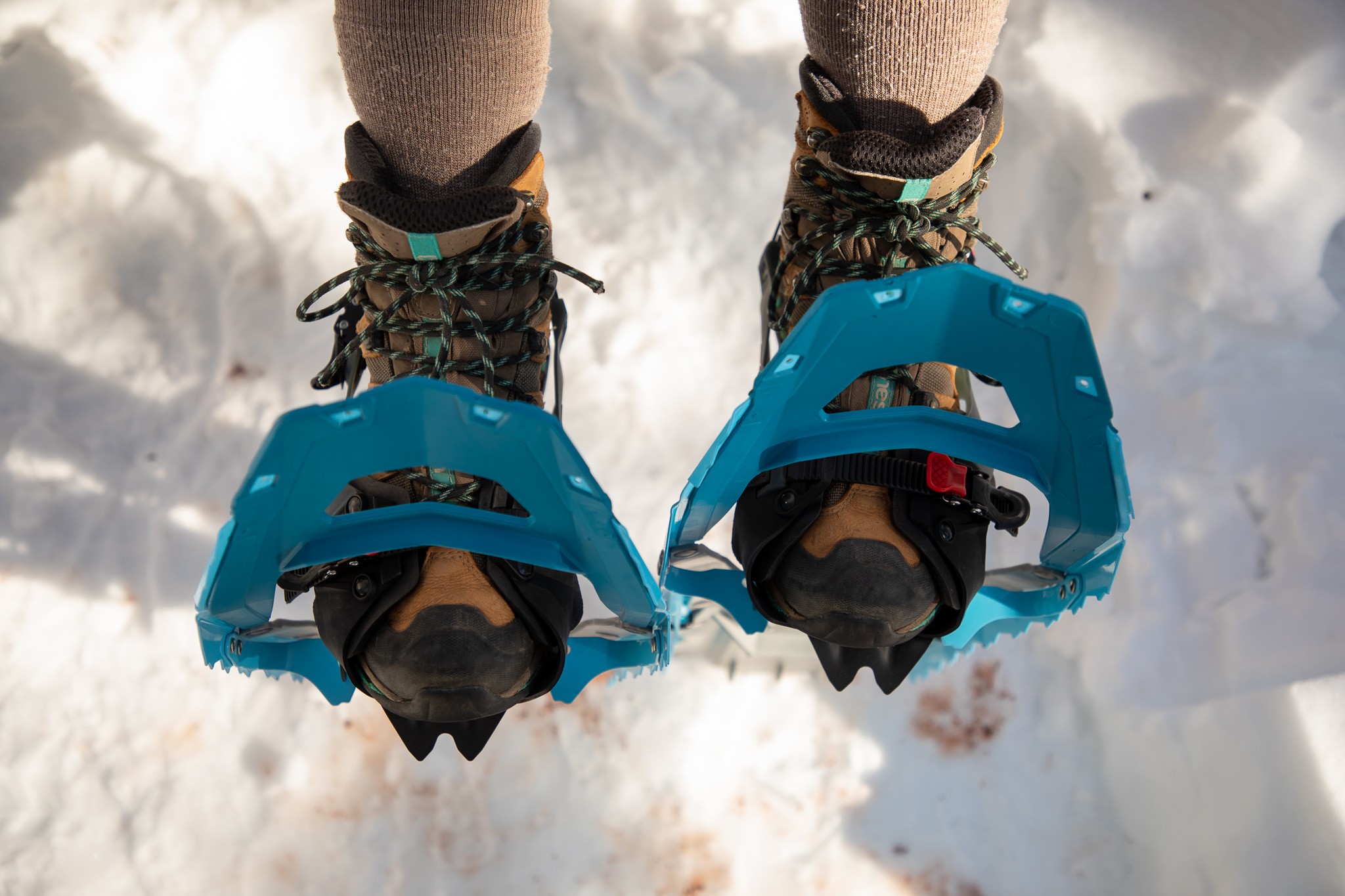 The benefits of wearing snowshoes do not stop at flotation. Traction is an essential attribute to pay attention to, especially if you plan to hike steep icy terrain.