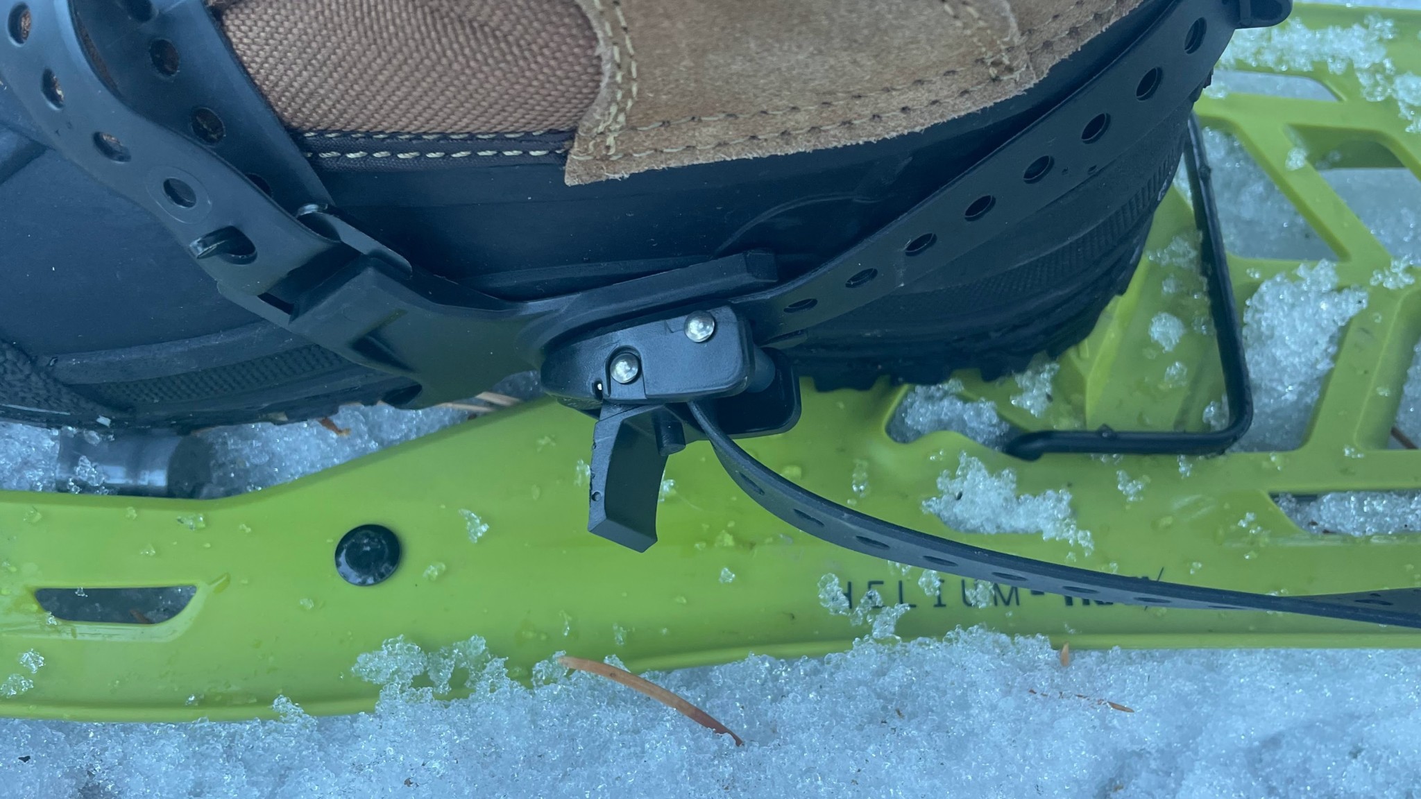 When it comes to how pleasant or unpleasant it is to walk in a pair of snowshoes, several factors come into play. These include, but are not limited to, how the binding is attached to the deck and the overall shape of the deck. The Helium Trail goes with a hinged attachment for the binding to deck attachment. Considering that this is the “Trail” model of the Atlas Helium line, it wouldn't be ridiculous for these to have a strapped attachment. That being said, the hinged attachment performs better on gnarly, steep, or technical ground, so using it on this snowshoe adds versatility.