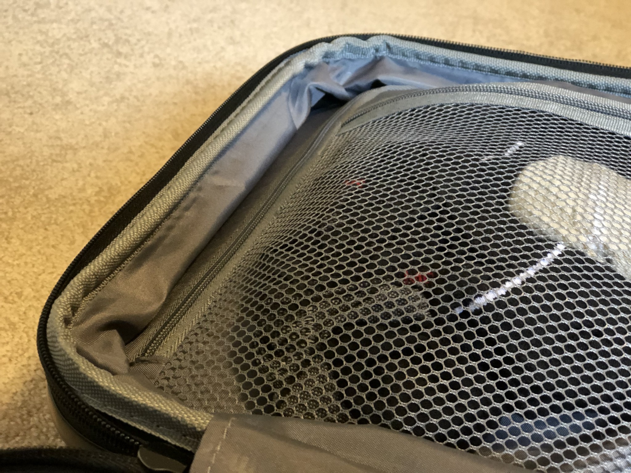 Like any hard-sided piece of luggage, there are no outside pockets, so you really need to have a handy personal item to fulfill that function. It also has no laptop sleeve of any kind anywhere in the bag, so if you tend to travel with a laptop or tablet, you'll need another secure way to transport it. All the pieces you'd expect to be on a suitcase are there and work fine, but don't inspire the confidence of being able to check this bag or even use it for many years - maybe not even months.