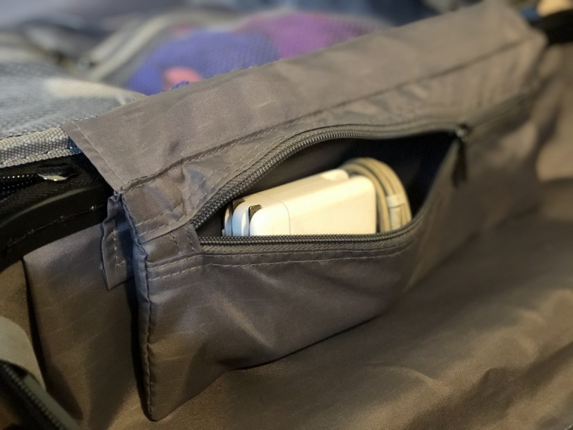 The opposite side has a simple cross-strap to hold everything in place. However, it's made of the loosest elastic band we've ever had the misfortune of testing in a piece of luggage. We're not really sure the purpose of this band for anything other than looks, as it doesn't help compress anything and doesn't even keep things in place as you walk around. There are a few internal pockets, but we found their thin, narrow shapes to be very challenging to use. We're rather disappointed by the organizational features, storage capacity, and compression options (or lack thereof) of this bag.