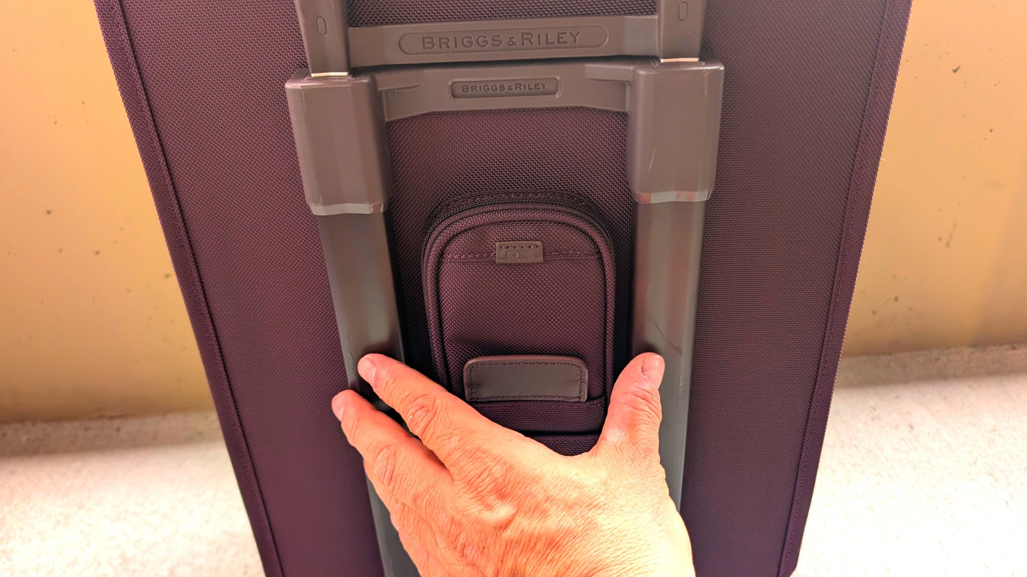 We think the handle on the very bottom of the carry-on is a little too tight, but we appreciate that it's there (this feature isn't present on every bag), and we had no other complaints when it came to moving our Briggs & Riley. We loved its leather top handle, and the adjustable trolley has one of the tallest extensions we've seen. Its top height is roughly 44 inches. When it comes to cruising, this beauty glides like Grandma's Cadillac. We also really like that the exterior trolley housing protects the case when hopping staircases or curbs, although it's made of metal and tends to scratch.