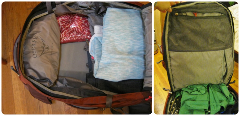 When we first unzipped the Osprey Meridian, we were shocked at how much space its frame took up inside the main compartment; indeed, the bulky backpack straps take up a fair bit of space in the back of the bag. The main bag has an internal volume of 40 liters (three liters less than the REI Wheely Beast 22 and the Travelpro Maxlite 5 22), but we were surprised to find that we could pack all our packing test items into this bag without too much difficulty. However, upon zipping the bag up, we realized that the Meridian was bulging out suspiciously on both sides, so we grabbed a tape measure and realized that this bag was now three inches wider than the maximum legal carry on measurement. Moral of the story: this bag holds a lot of stuff, but it seems to sneakily expand beyond airline requirements. The convertible REI Stratocruiser 22 also held all our stuff during the packing test but remained within the designated measurements.