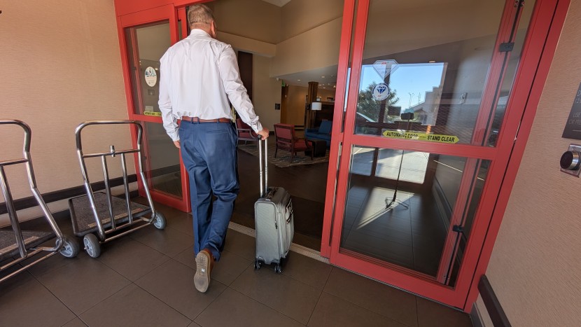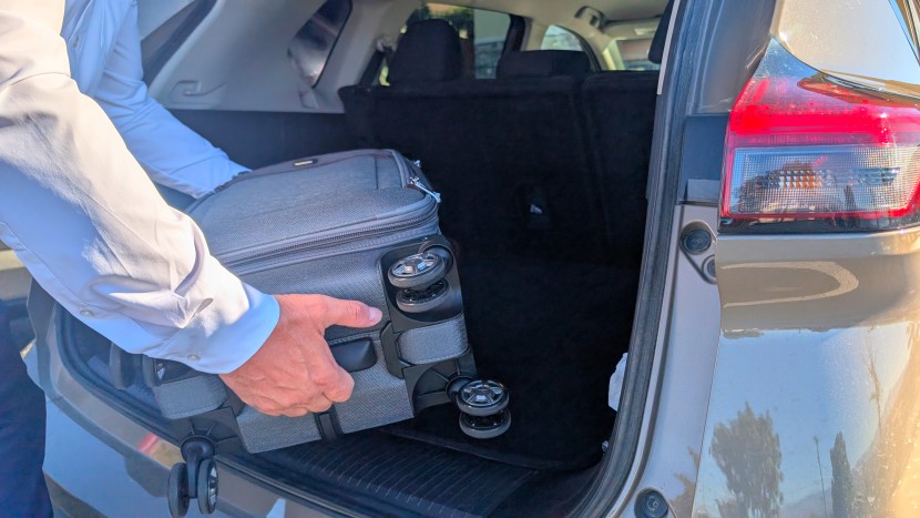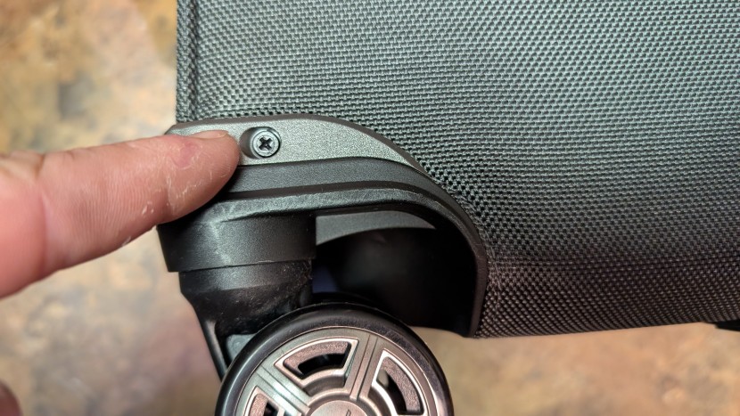 When cruising concrete, tile, and even carpet, the Travlepro stays right by your side. In our testing, it rolled nearly perfectly — always. Thanks to embedded magnets (MagnaTrac®), this bag's 2.25-inch tall spinners quickly lock into place no matter what direction you're headed, making your trip to your gate as carefree as possible (really). The only thing we didn't like about this feature is the need to be more vigilant when letting go of our bag. Since the wheels are always aligned, if you release your grip of the handle to pick something up, the Travelpro will keep rolling, especially if the ground is even slightly angled. We notice this the most when stopping to open a car door — you can't just let go of this bag. Lastly, as for wobbles, vibrations, or any other wheel defects, we found none.