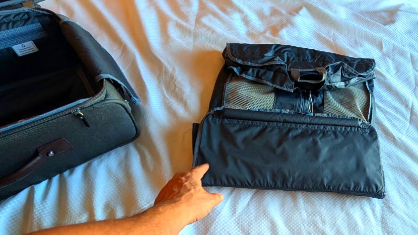 During our business travels, we appreciated having the option to pack dress clothes in the Travelpro's fold-up suiter. Essentially, an elaborate garment bag; we admit it isn't a perfect process, but it still performs quite well and is much better than nothing at all.