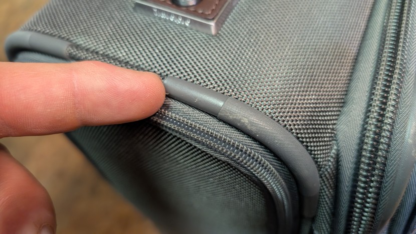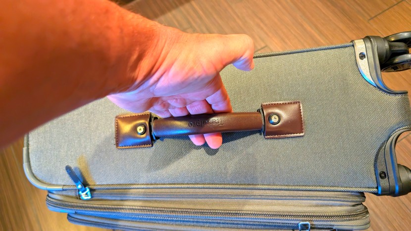 We loved the leather exterior handles on the Platinum Elite. They're sturdy, well-placed, and they provide a dense, secure grip. We especially loved the molded plastic fingertip grasp at the bottom of the bag. It makes sliding the Travelpro out of a car or overhead compartment a simple, straightforward task. The trolley handle is sturdy and offers four adjustable heights ranging from 36 inches to 42.5 inches, so even taller travelers can roll with ease. As for negatives, we only had one: there are a few tiny bumper rails on the backside of the case, which overall do a good job. However, when it comes to sliding up stairs or curbs, the exterior shell of the Travelpro often takes most of the brunt. For sure, the ballistic nylon is up to the task, but we didn't like seeing our classy carry-on grind against concrete, tile, or metal.