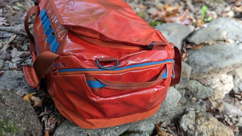 Lastly, the Alpaca 40 has a single zippered pocket on the hood for small items. On larger models, like the 100-liter version, there are two separate pockets on the hood.