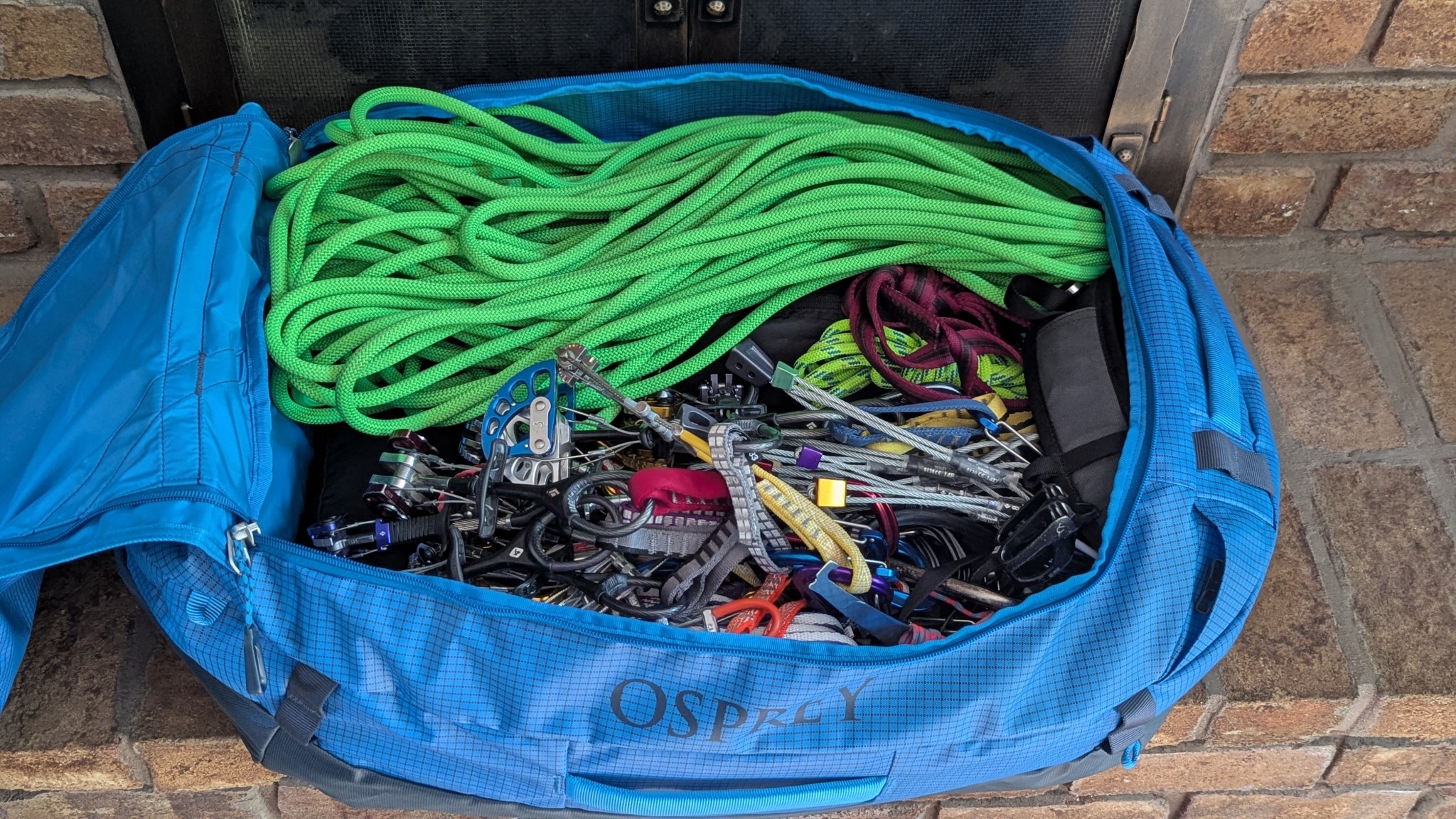 Constructed from 630-denier recycled nylon, the Osprey Transporter is relatively robust compared to the rest of our overall lineup but falls short of some of the top-ranked expedition duffels with their 1000-denier builds. A few other highly-ranked models also include a layer of padding or an extra reinforcement layer of bottom material to help resist abrasion, but the Transporter has only a single layer all around.