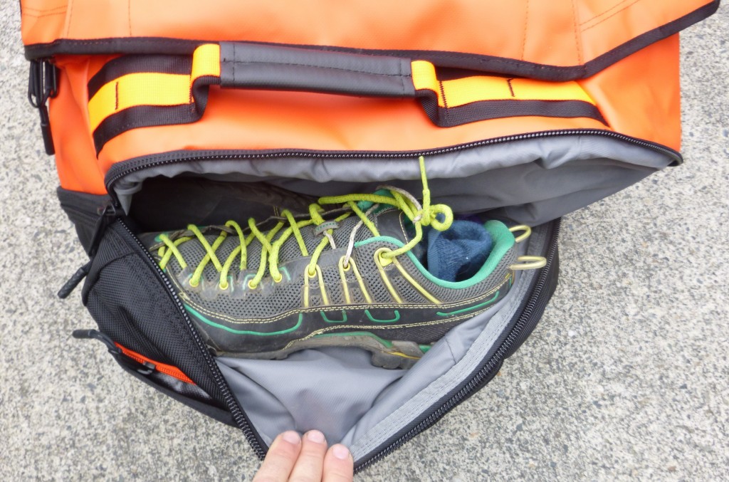 We find that the zippered pocket on the handle end of the bag serves as a great place to pack dirty shoes or wet clothes. Credit: Ian Nicholson